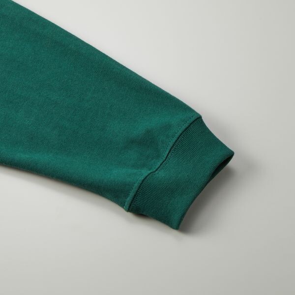 ・袖口は1.6インチ幅のリブ仕様、シームラインはまたぎ2本針始末
