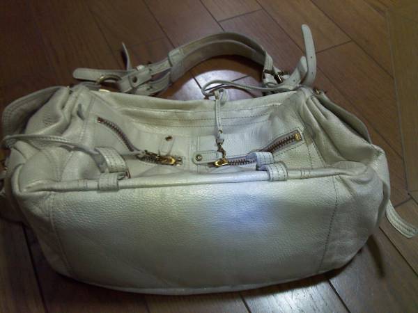 エクラムールのショルダーバック 革製 白色系 サイズ縦25cm 横40cm 幅15cm 中古品で汚れ等使用感あります