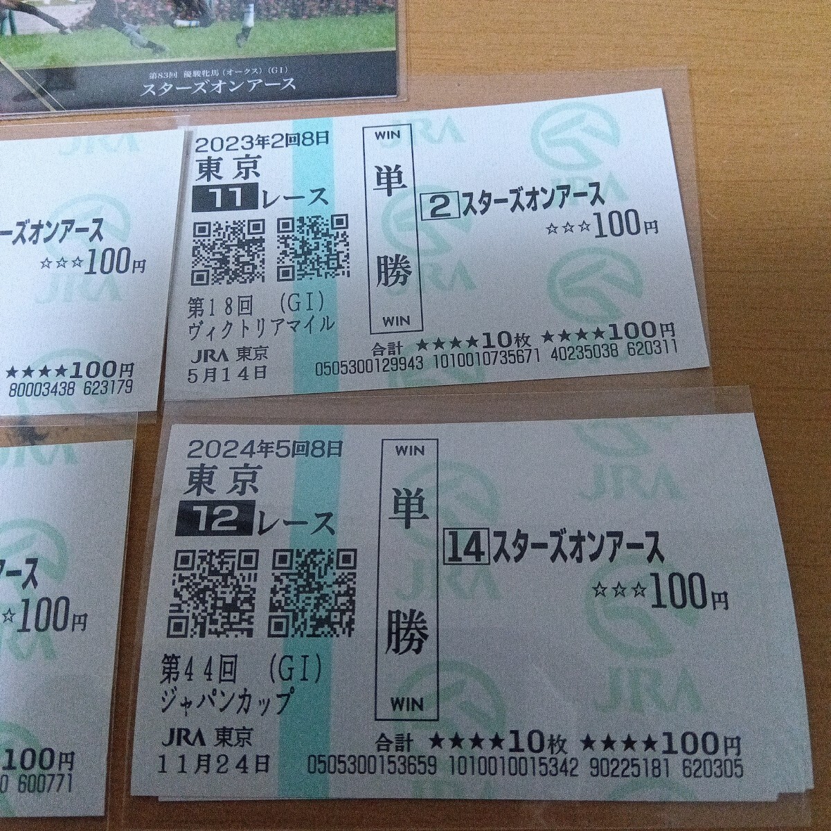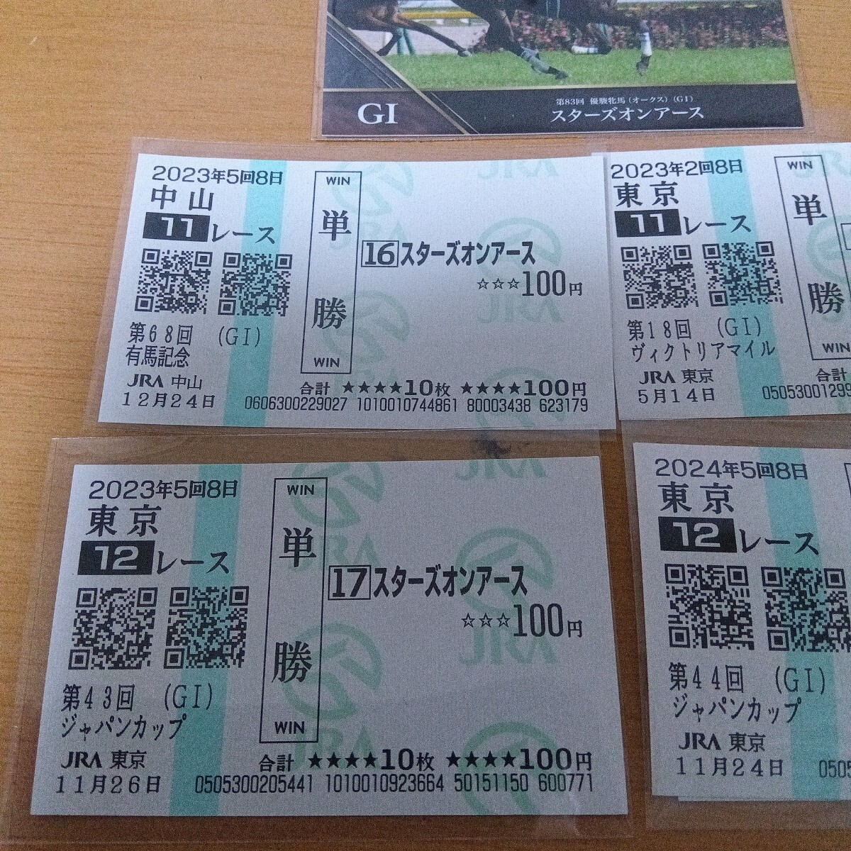 競馬 スターズオンアース 単勝馬券 カードトレカ ジャパンカップ 有馬記念 ヴィクトリアマイル 単勝現地購入馬券 ウマ娘オークス優勝カード