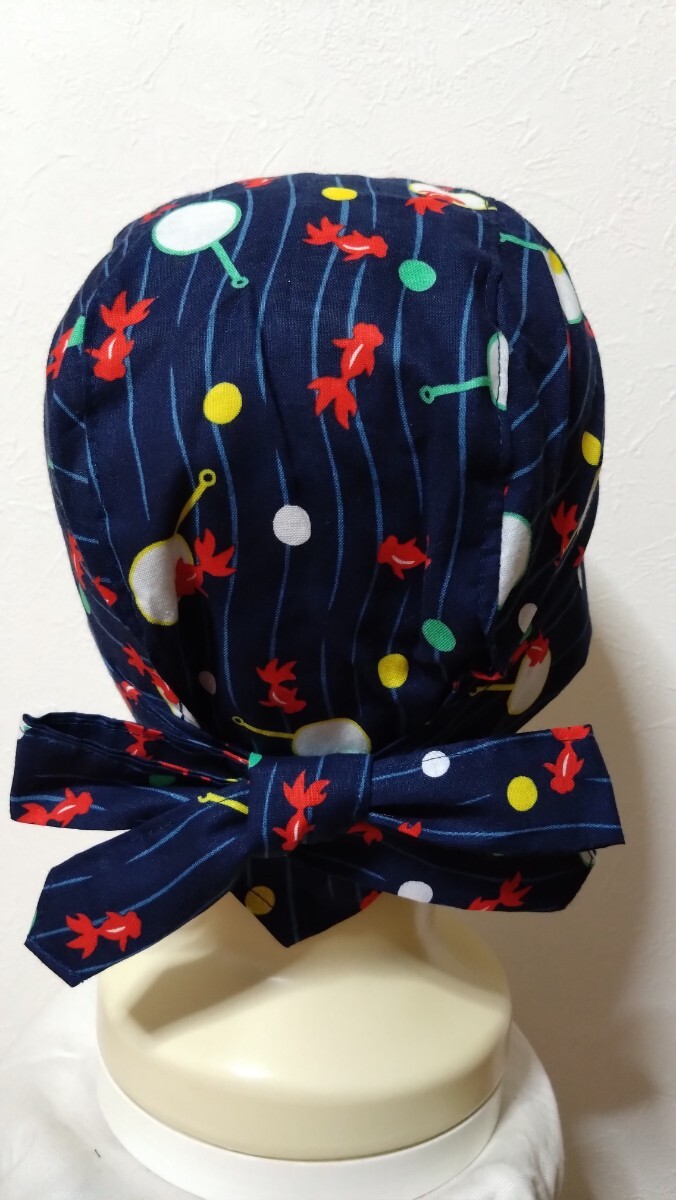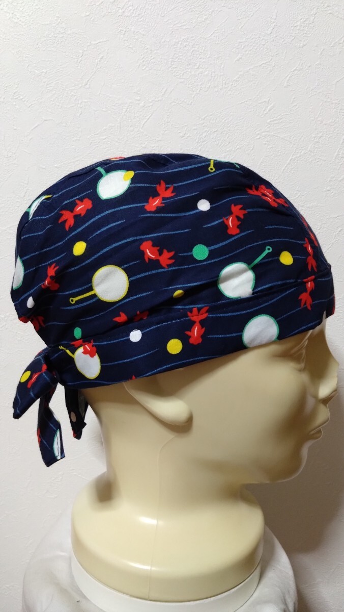 短★バンダナキャップ★ハンドメイド 和柄 金魚すくい 紺