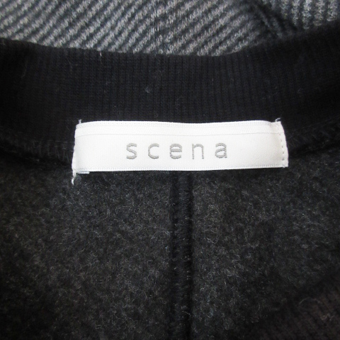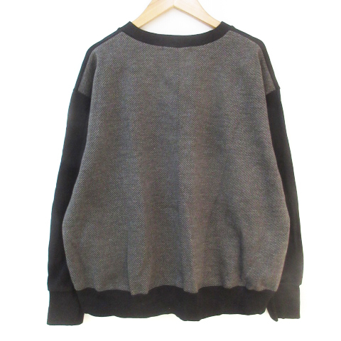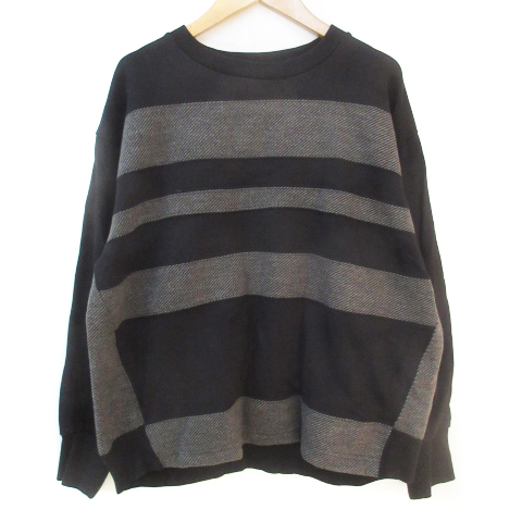 シェーナ scena トレーナー 長袖 クルーネック ボーダー柄 ダイアゴナルストライプ柄 F 黒 グレー ブラック /FF31 レディース