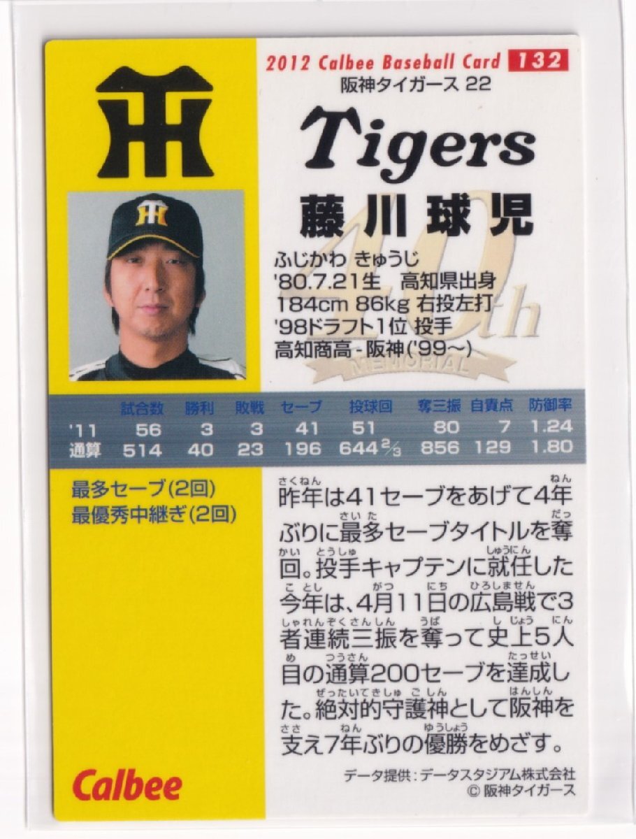 2012プロ野球チップス第2弾 132 藤川球児(阪神)