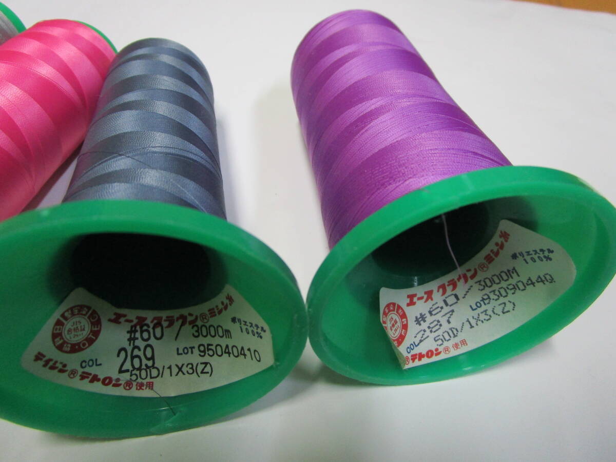 即決価格!お買い得です!ミシン糸5個【8】#60 エースクラウン 使用品 ポリエステル100% ミシン ハンドメイド リメイク 洋裁