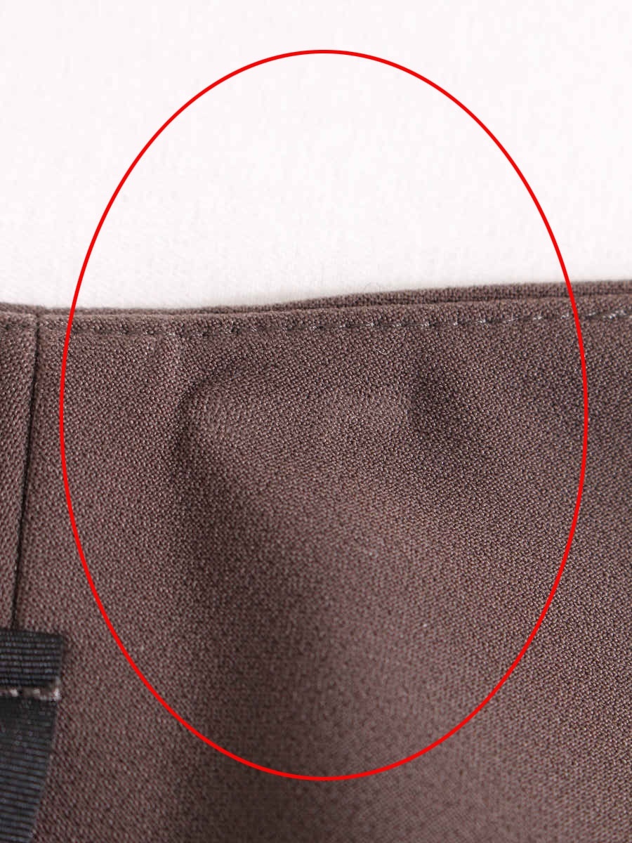 【汚れ・シミ】背面右ウエスト内側や正面右上部に薄い色付きがございます。