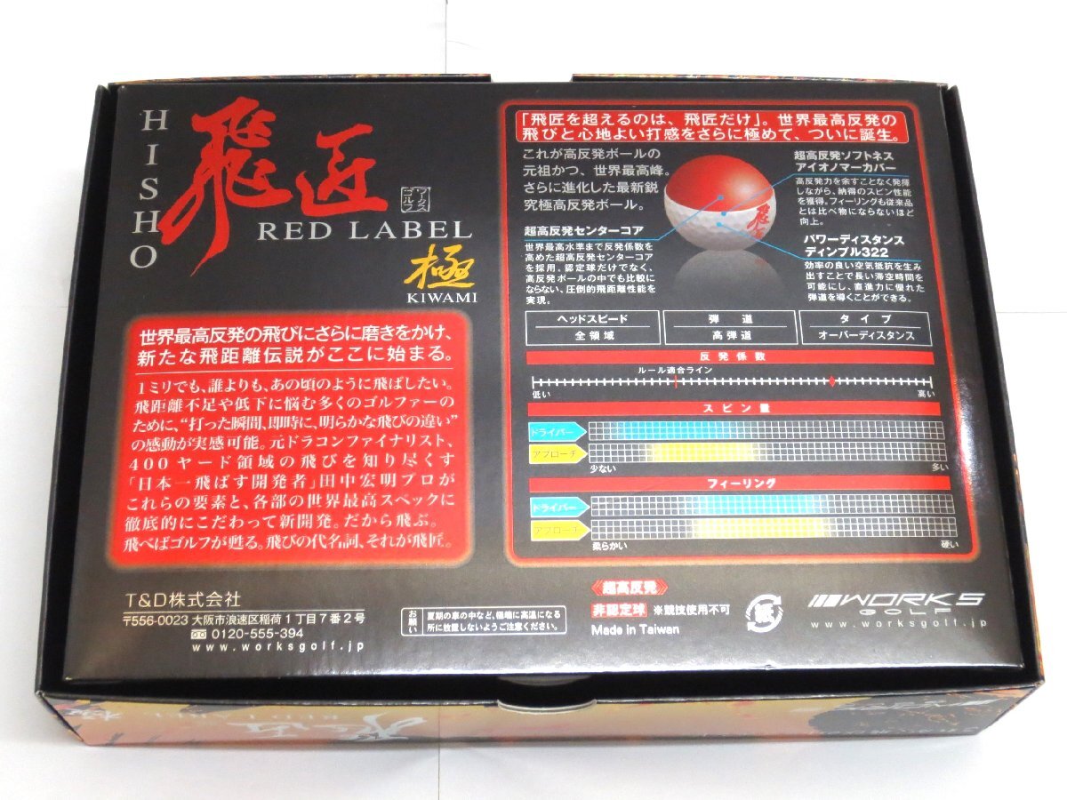 | アイテム | ゴルフボール | モデル名 | 2023年 モデル 飛匠:HISHO RED LABEL KIWAMI レッドラベル 極 ボール 《 高反発 非公認球 》 |