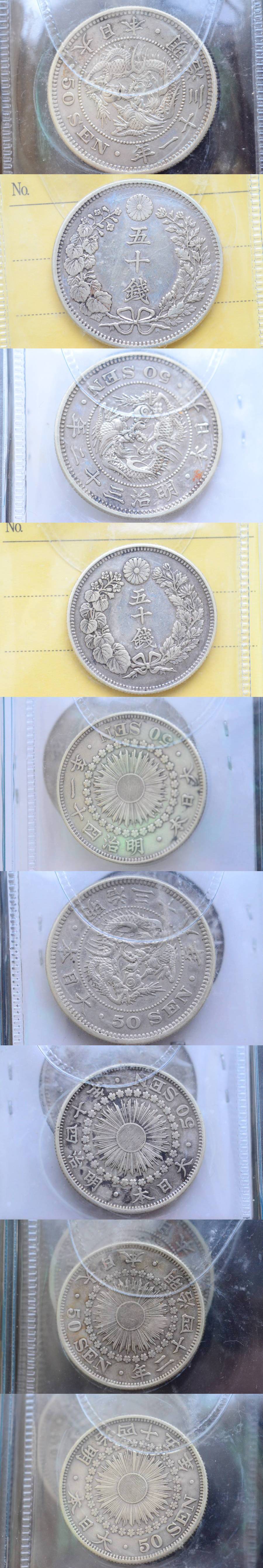 2.50銭銀貨44枚 (竜50銭14枚、旭日50銭10枚、小型50銭20枚)