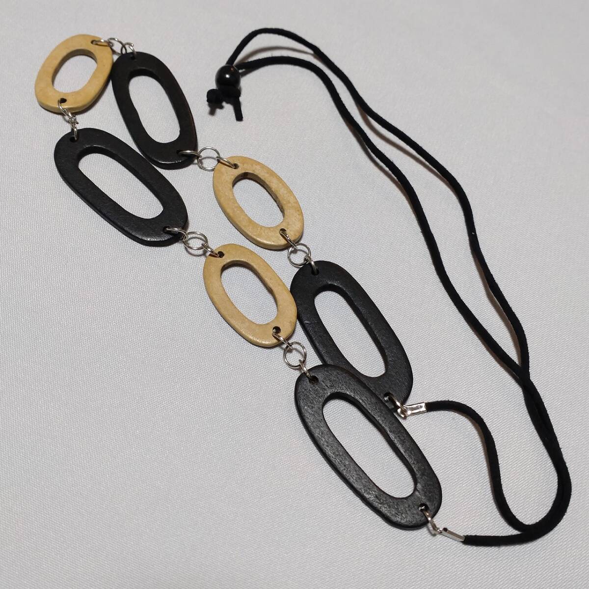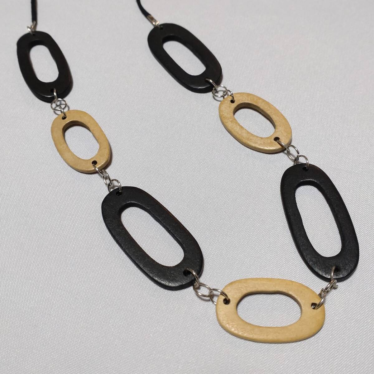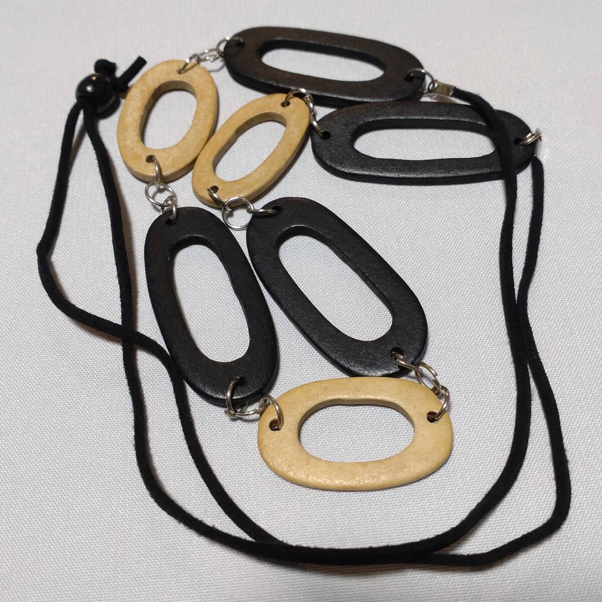木製 ネックレス リング ブラック ブラウン 長さ調整が出来る 首飾り アクセサリー 【4737K11】