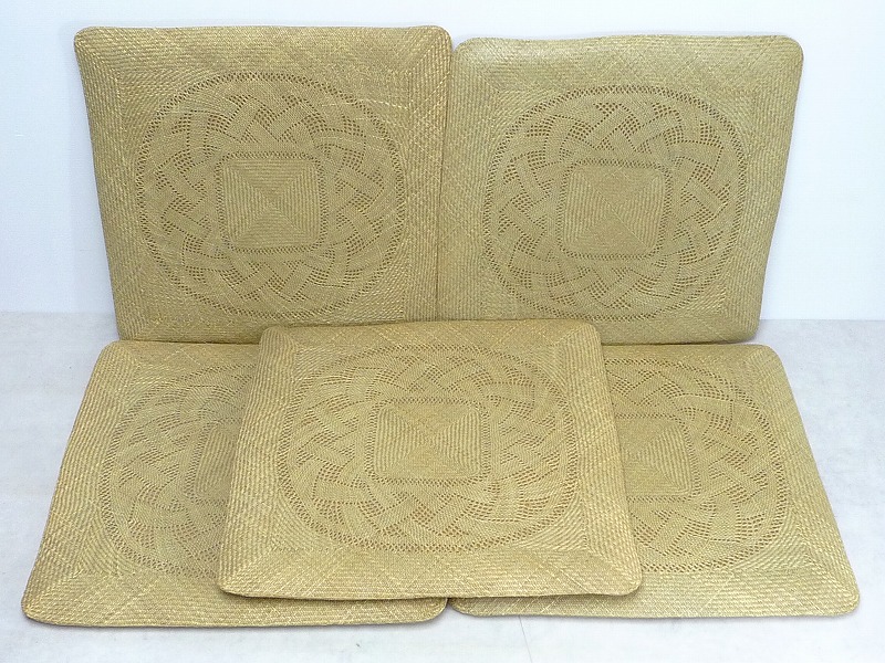 14AB674▲約55cm×約55cmパナマ座布団5点セット・夏敷物クッションい草