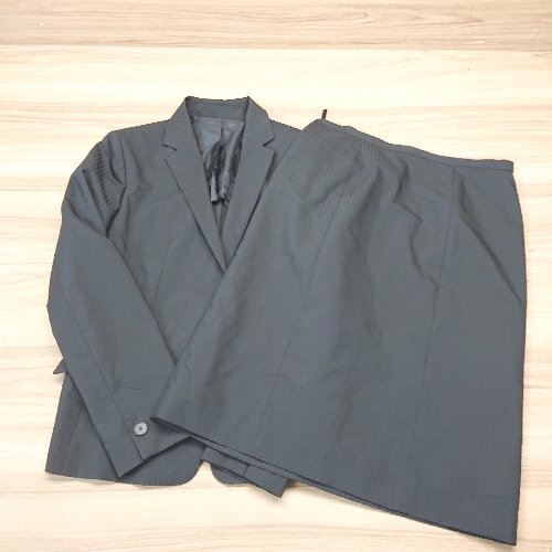 ◇ ◎ COMMECAISM コムサイズム ストライプ柄 フォーマル ひざ丈 セットアップ 表記なし ブラック レディース E
