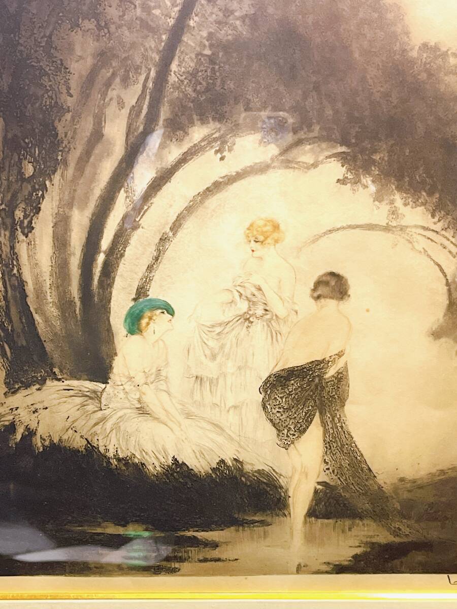 | ルイ・イカール作「バザーズ」です。 エッチングに手彩色の作品です。 サインがあります。 薄いヤケがあります。 絵のサイズ:52×44㎝ 額サイズ:78×69㎝ ルイ・イカール(1888-1950)は、アールデコ時代にフランスで活躍した画家であり、 時代の空気を今に伝える重要な作品を数多く残しました。 イカールは華やかな女性たちを繊細で優雅なタッチで表現し、第一次世界大戦を 生き抜いた独自の戦争観でエッチング作品を多く生みだしました。 | |||