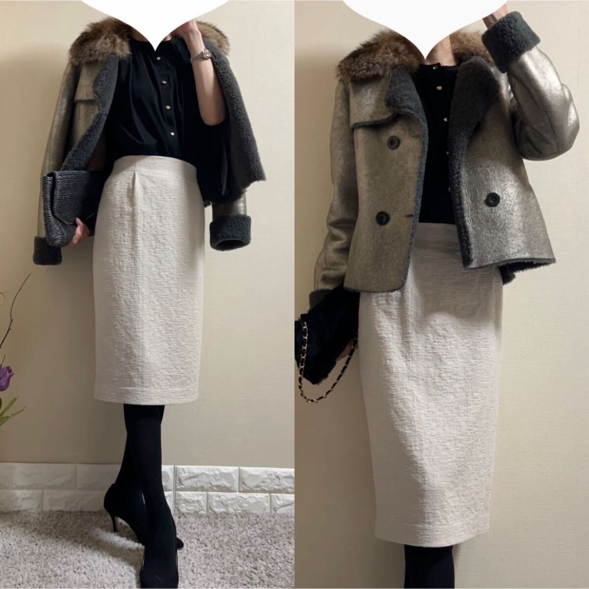 合わせたシルクドレスは『DUAL VIEW デュアルビュー』。パンツは『セルフォード(参考商品)』、スカートは『ロペ (売切)、ユナイテッドアローズ(売切)』