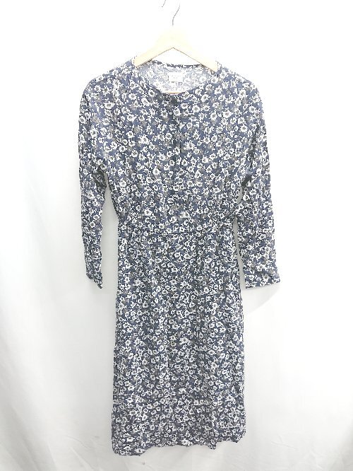 ◇ ⊂ URBAN RESEARCH DOORS アーバンリサーチ 花柄 長袖 ロング ワンピース サイズF ネイビー系 レディース E