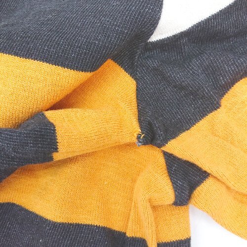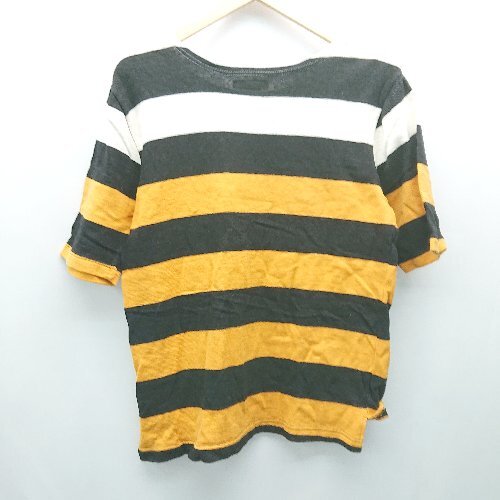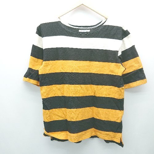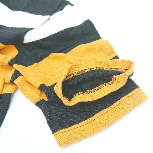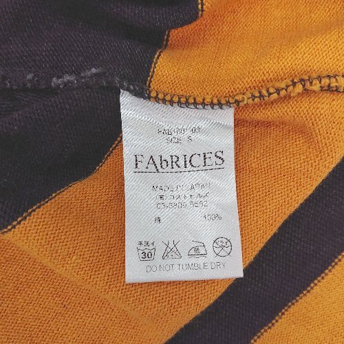 ◇ FAbRICES Uネック ボーダー柄 ストレッチ シンプル 半袖 カットソー サイズS オレンジ ブラック ホワイト レディース E