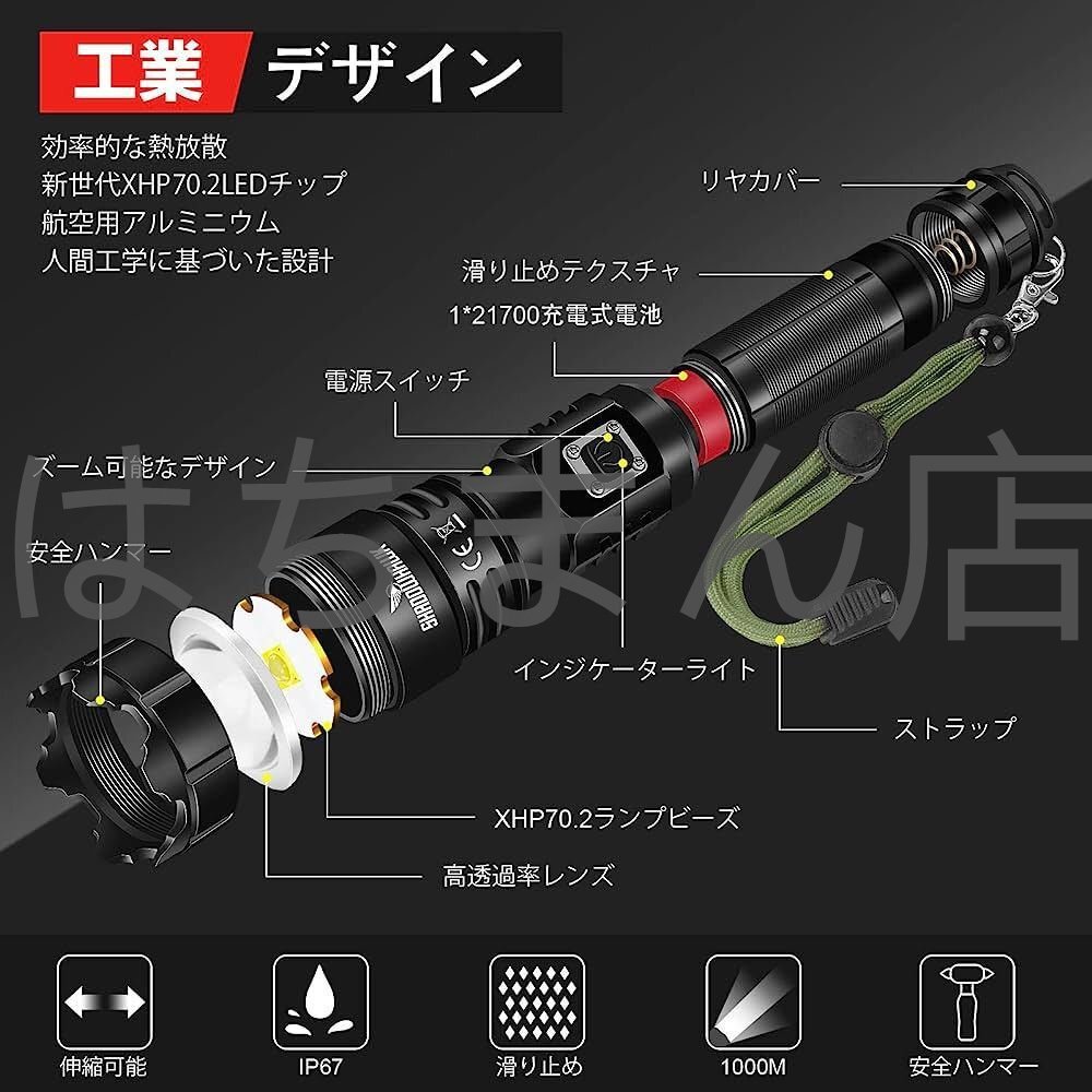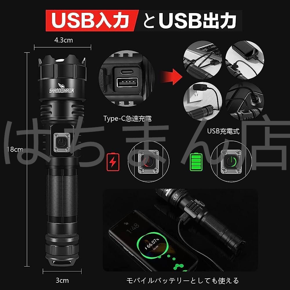 懐中電灯 かいちゅうでんとう led 強力 軍用 最強 Shadowhawk 超高輝度 30000ルーメン フラッシュライト 充電式 ハンディライト XHP70.2