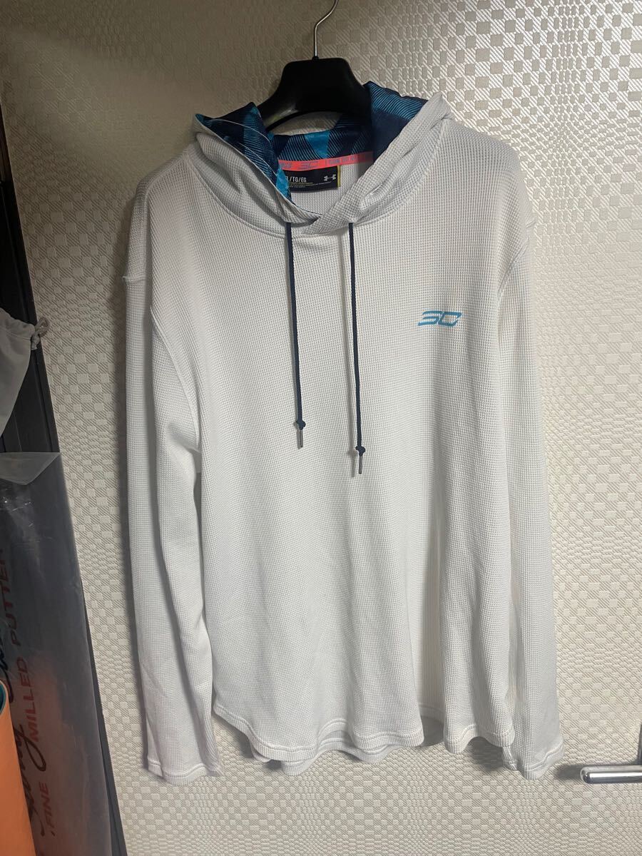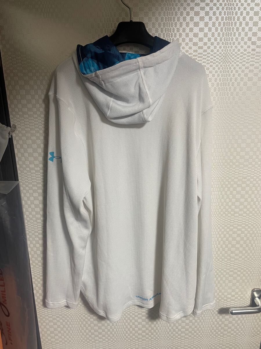 アンダーアーマー のプルオーバーパーカーです。サイズ X L表記で平置き脇下身幅61着丈73肩幅53袖丈65センチ位です。