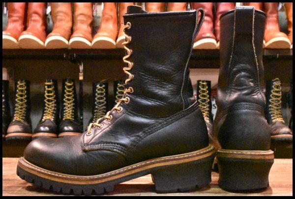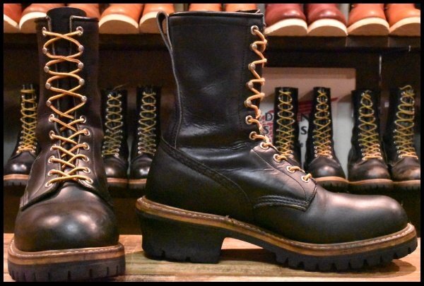【8D 良品 PT91刺繍】レッドウィング 2218 ロガー 黒 ブラッククローム スチールトゥ 編み上げ ロング ブーツ redwing HOPESMORE