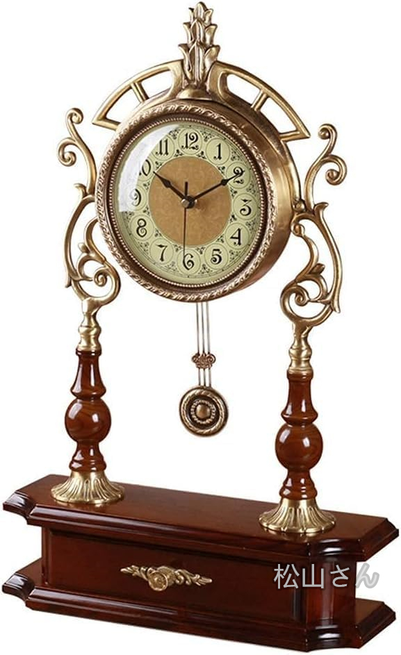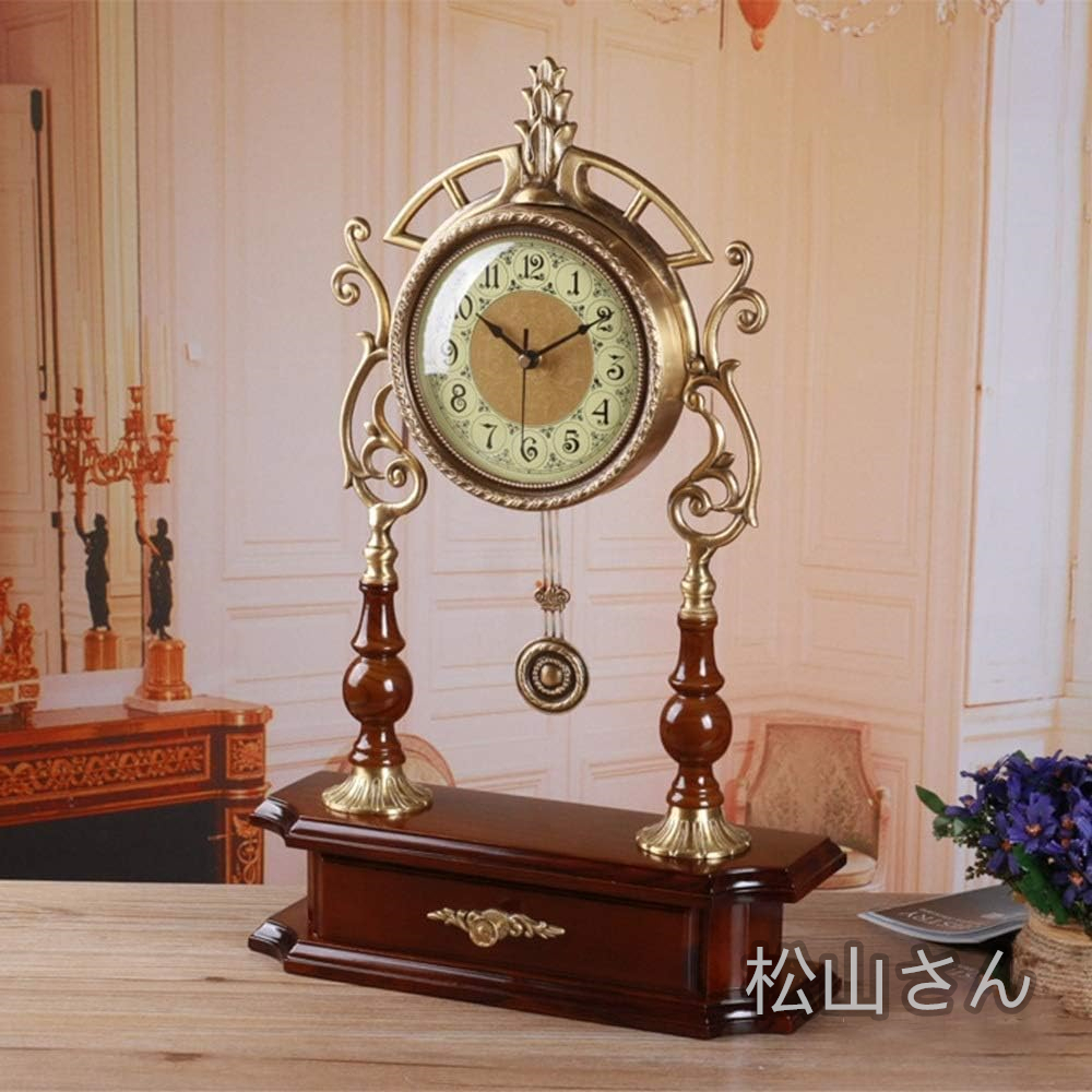 マントルクロック メタルテーブルクロック 振り子時計 サイレントデスククロック 小さな引き出し付きクォーツ時計