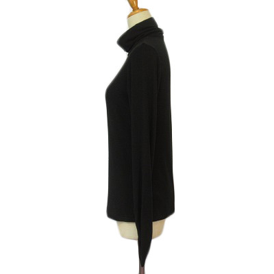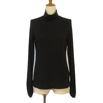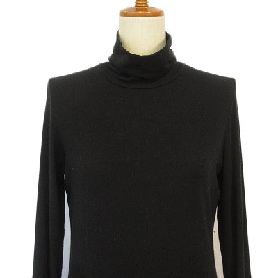 PREUVE プルーヴ カットソー ハイネック シャーリング ギャザー カシミヤ混 40 黒 ブラック レディース