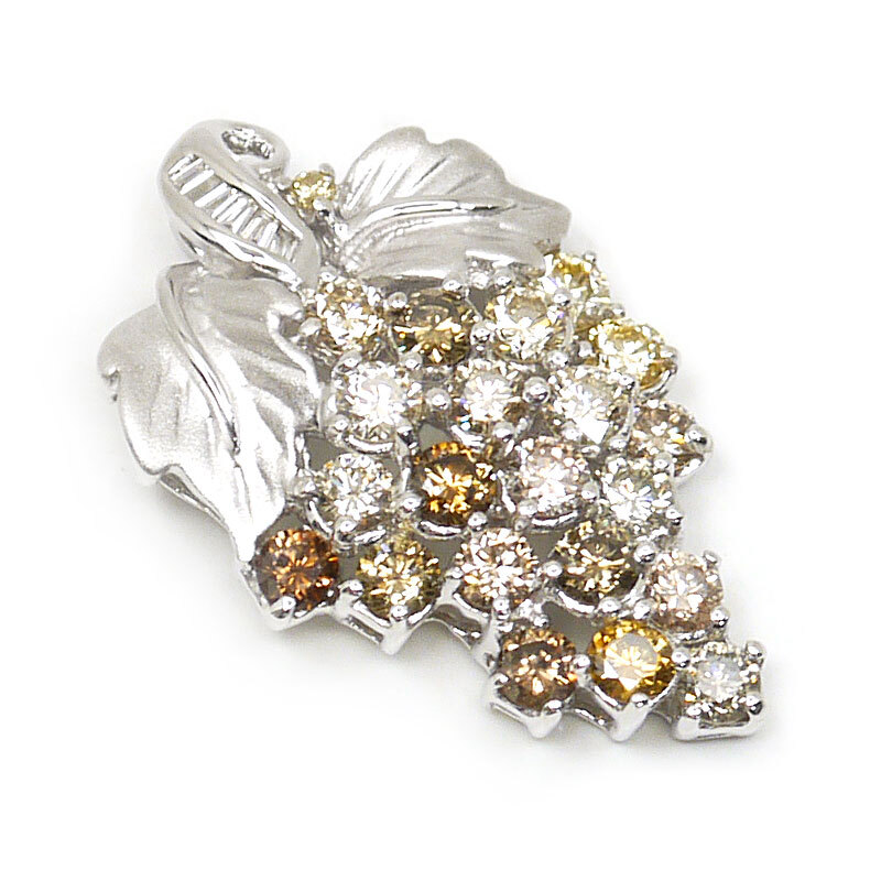 ・イエロー~ブラウン系のダイヤがセレクトされていますが、色の起源は不明です。内包物は使用時には気にならず、美しい輝きをお楽しみいただけます。