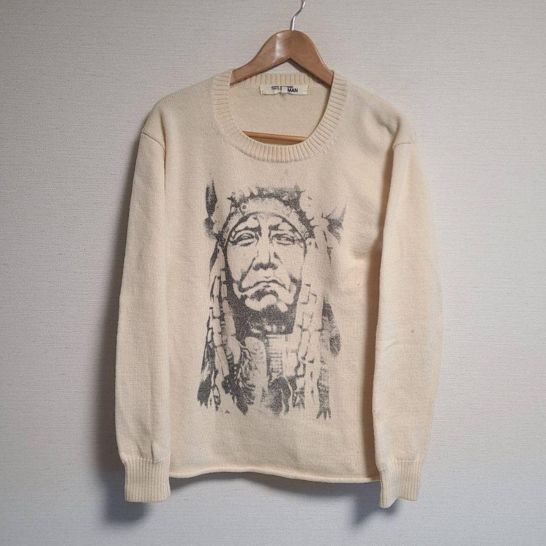商品名:ジュンヤワタナベ コムデギャルソン マン ニット セーター S プリント 難あり 日本製 アーカイブ 2003 インディアン
