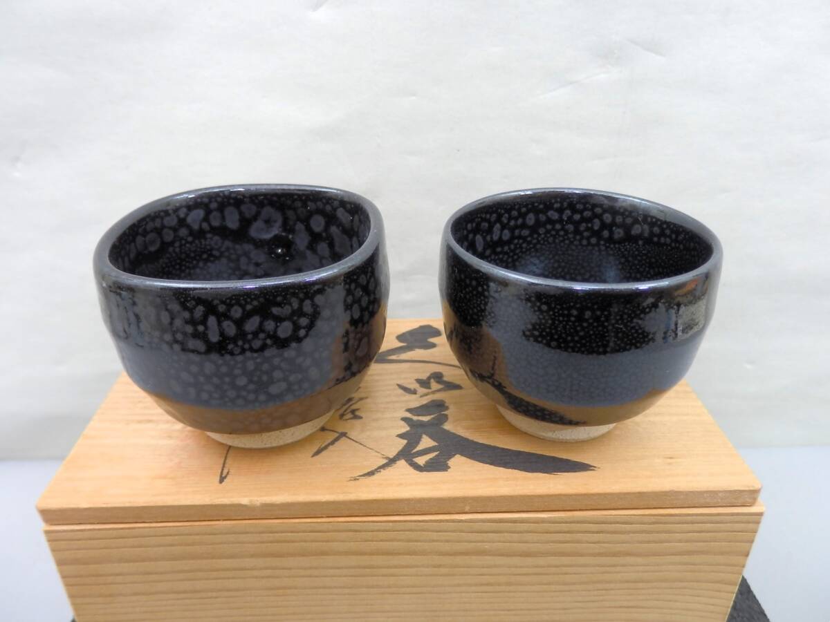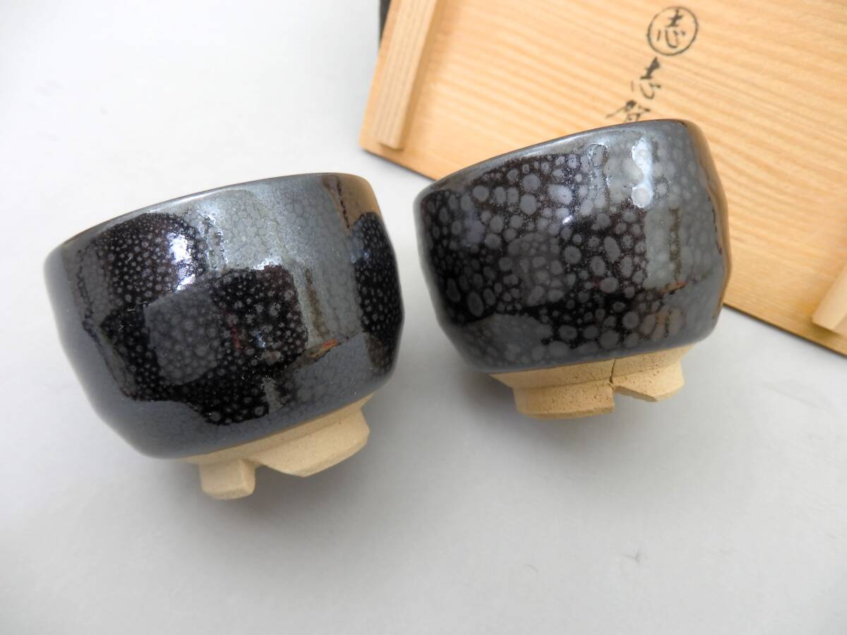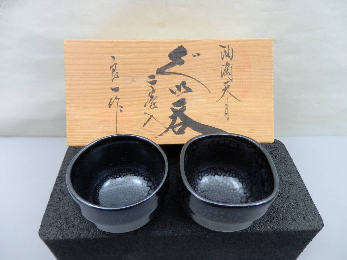 商品名 | 油滴天目 ぐい呑 ニ客 良一作 共箱 約204g 現状品 売り切り |