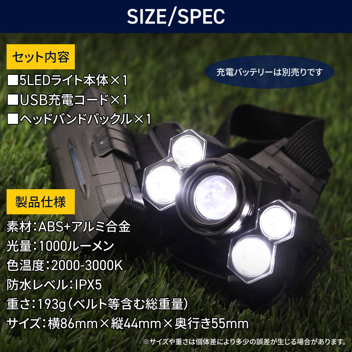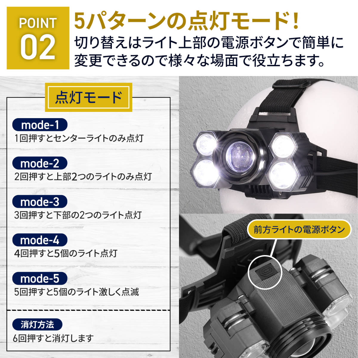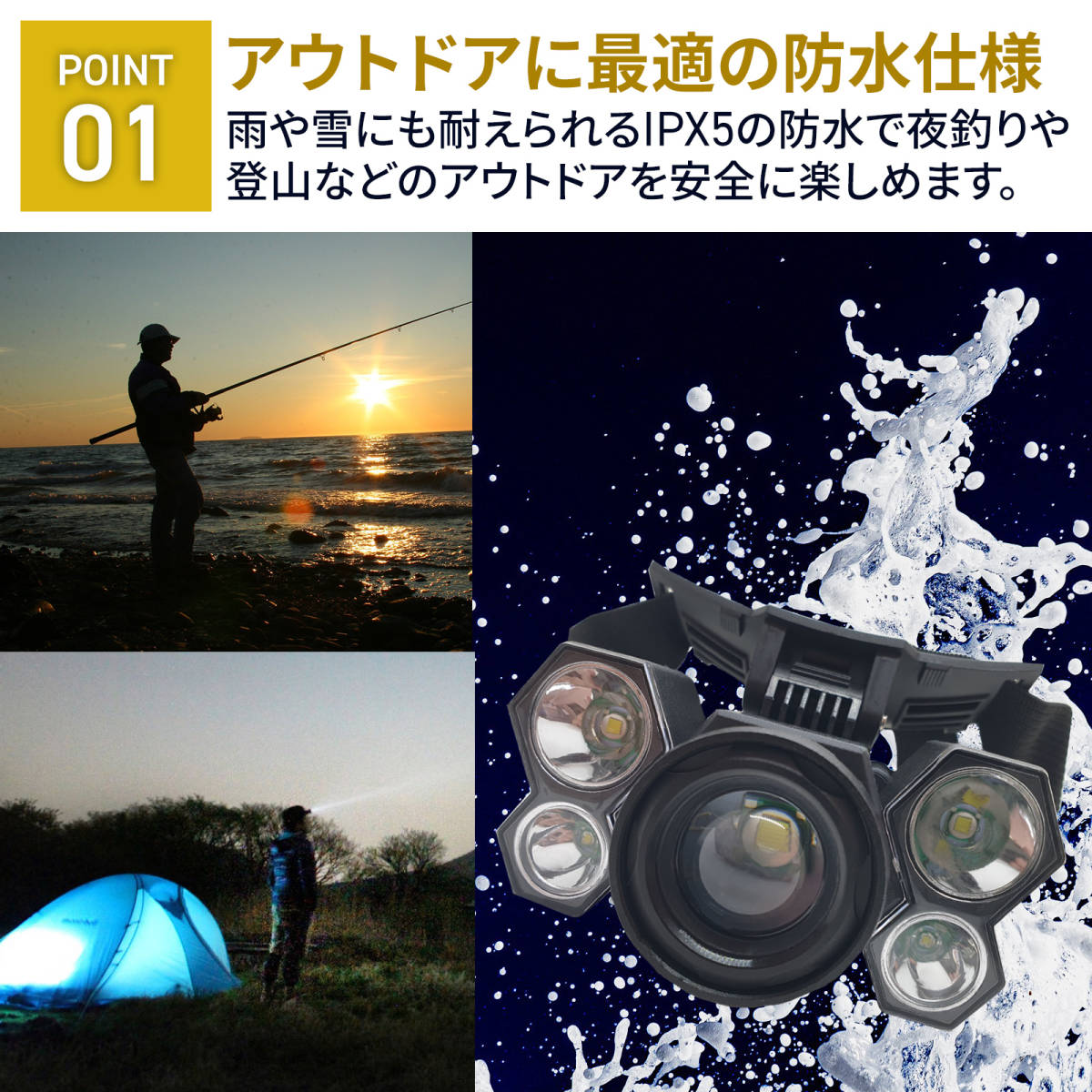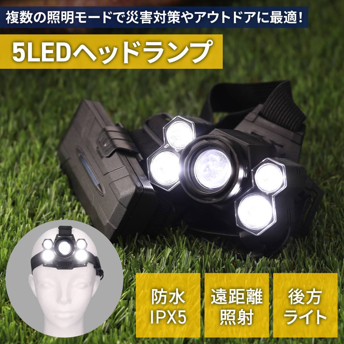 新品未使用品 5LEDヘッドライト ヘッドランプ 18650使用 USB充電式 懐中電灯 災害用ランプ アウトドア 釣り キャンプ