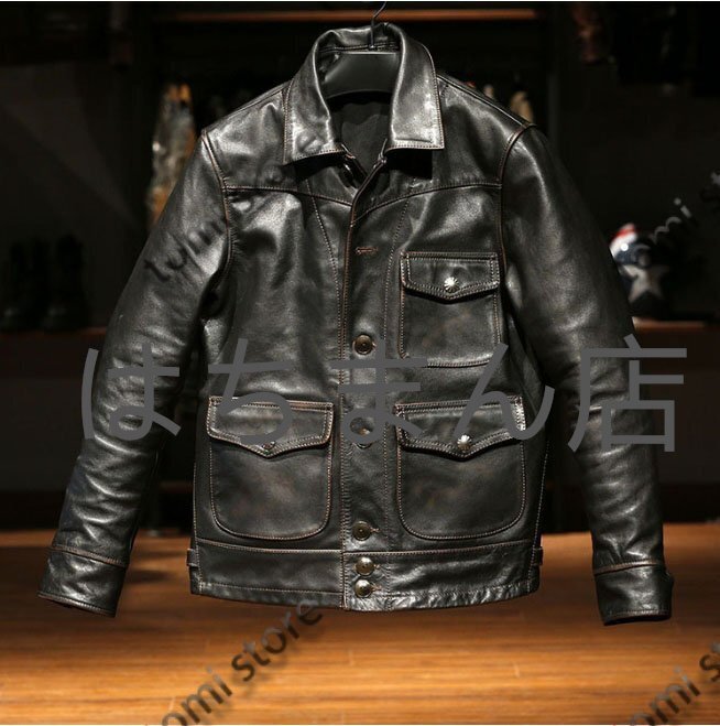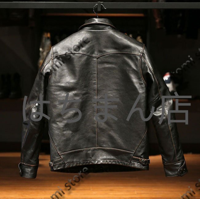 レザージャケット 上品 アメカジ復刻 本革 馬革 ユーズド加工 茶芯ホースハイドライダースジャケット  革ジャン S~4XL