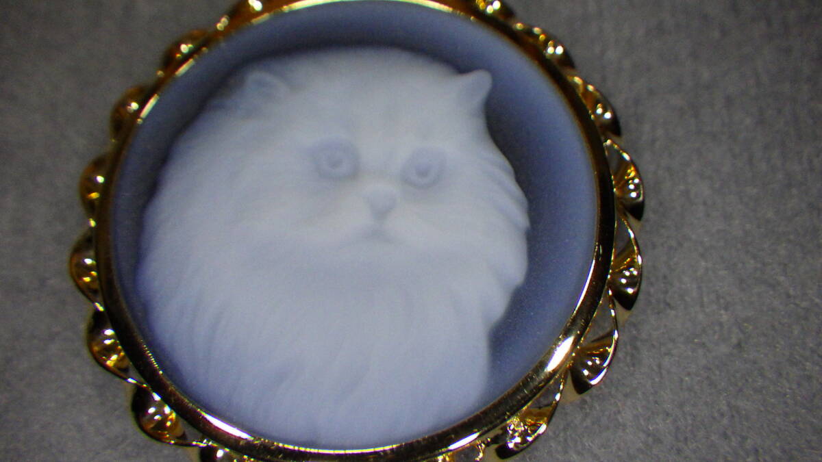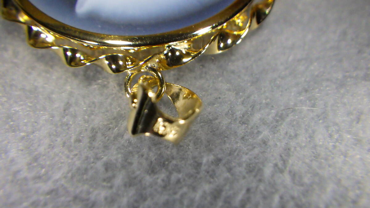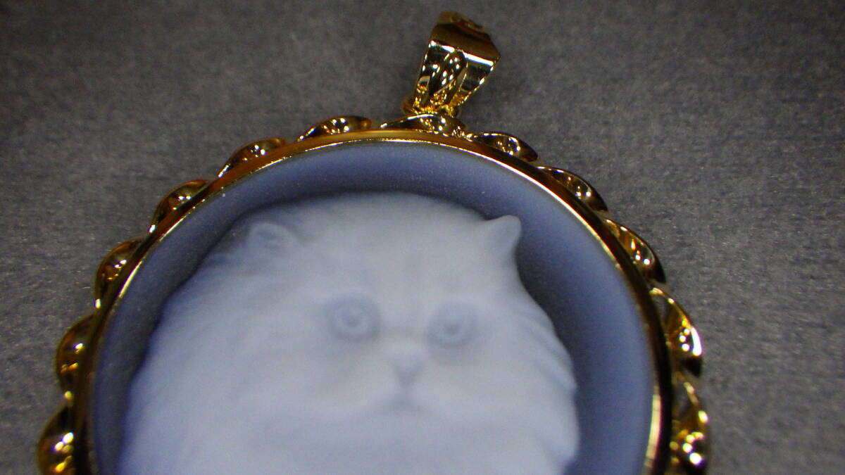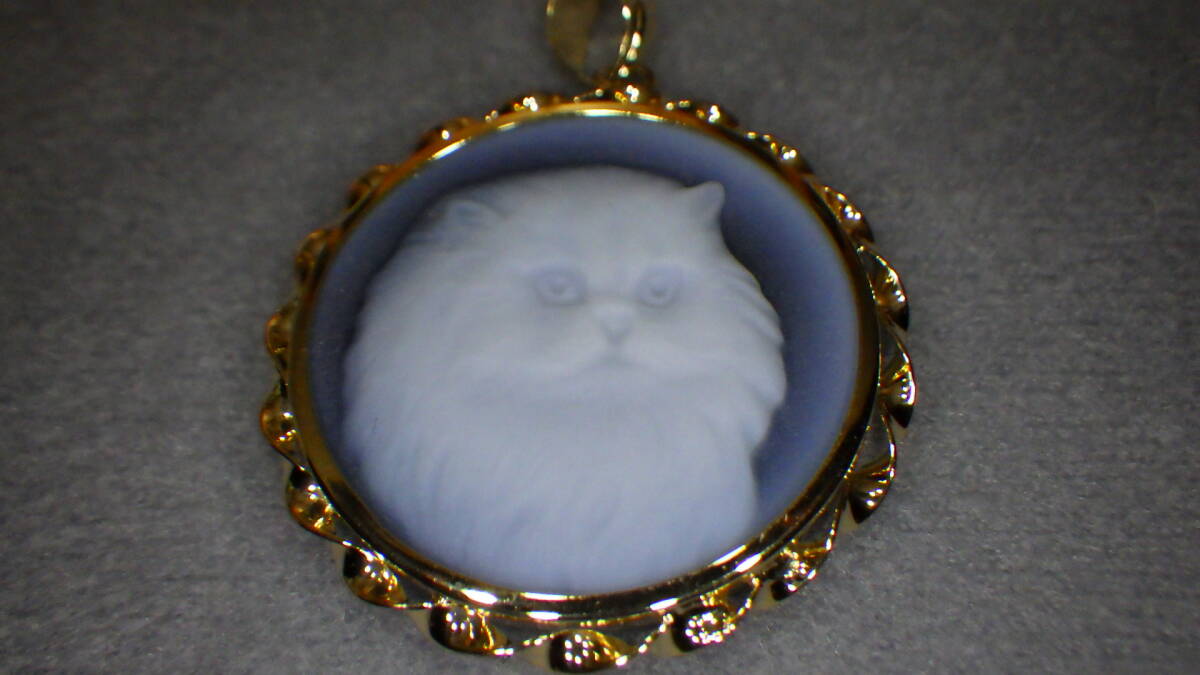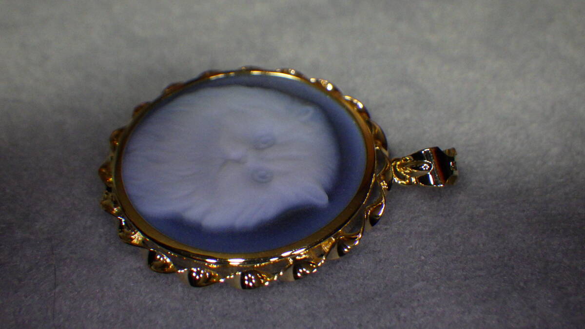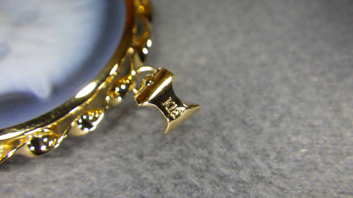 18金イエローゴールドの枠を使ったカメオのペンダントトップです。重量は4.1g、直径は2.5cm、しっかりした18金の枠です。猫がお好きな方いかがでしょうか、新品購入後長く保管していたものですが、状態は良いと思います。クレーム返品なしで宜しくお願い致します。