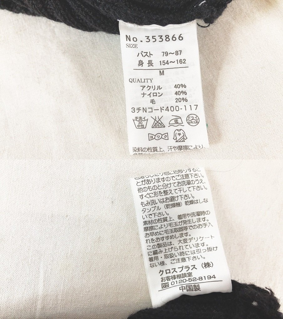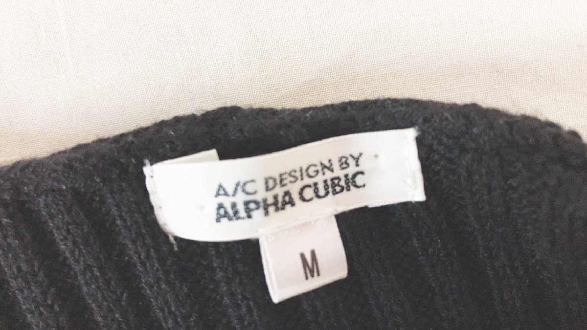 ALPHA CUBIC アルファキュービック 黒 カーディガン ボタンレス 長袖 M PA-5