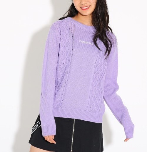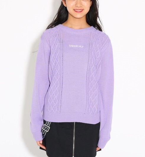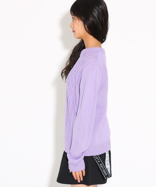 新品 PINK-latte ワンポイント刺繍ケーブル ニット ライトパープル(081) 16(S160cm) 定価2090円