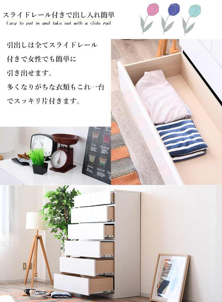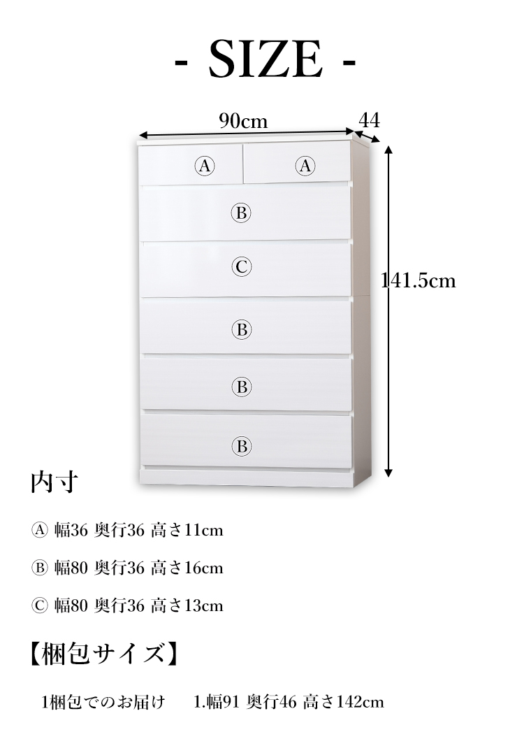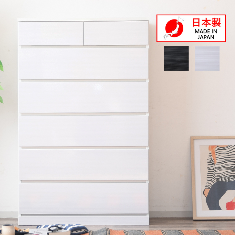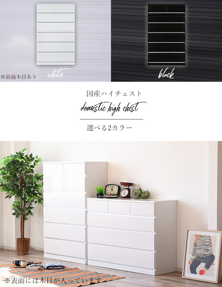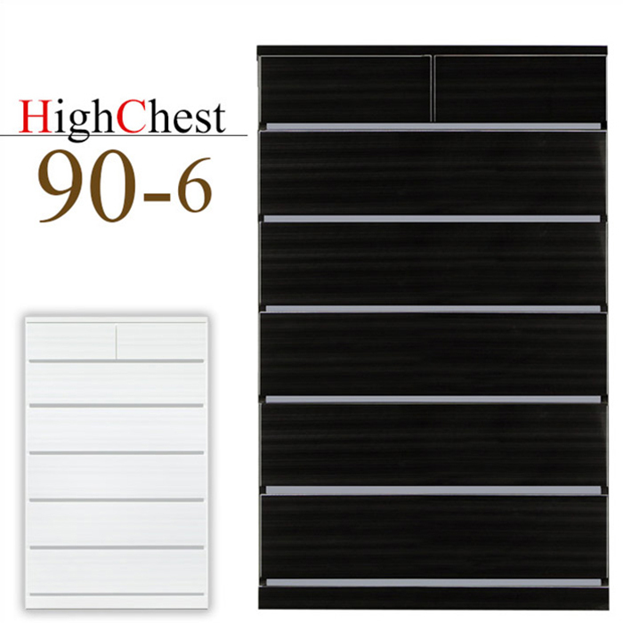 チェスト ハイチェスト 幅90cm 6段 完成品 ハイグロス真空貼り ツヤツヤ フルオープンレール付き 木製 国産 日本製 ゼブラホワイト