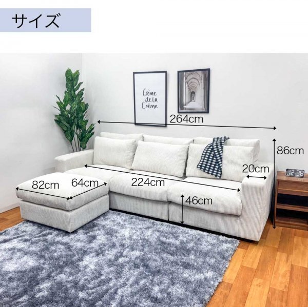 本体:(約)幅264cm奥行き97cm高さ86cm(座面高46cm)