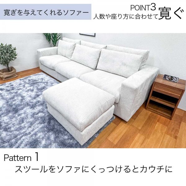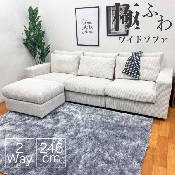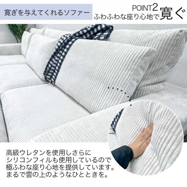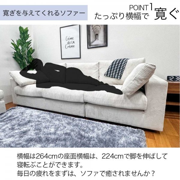 特価! ソファ ソファー 3人掛け 幅264 ファブリック 北欧 布生地 アイボリー ふわふわ 柔らかい 北欧スタイル 大きい カウチにも 4人掛け