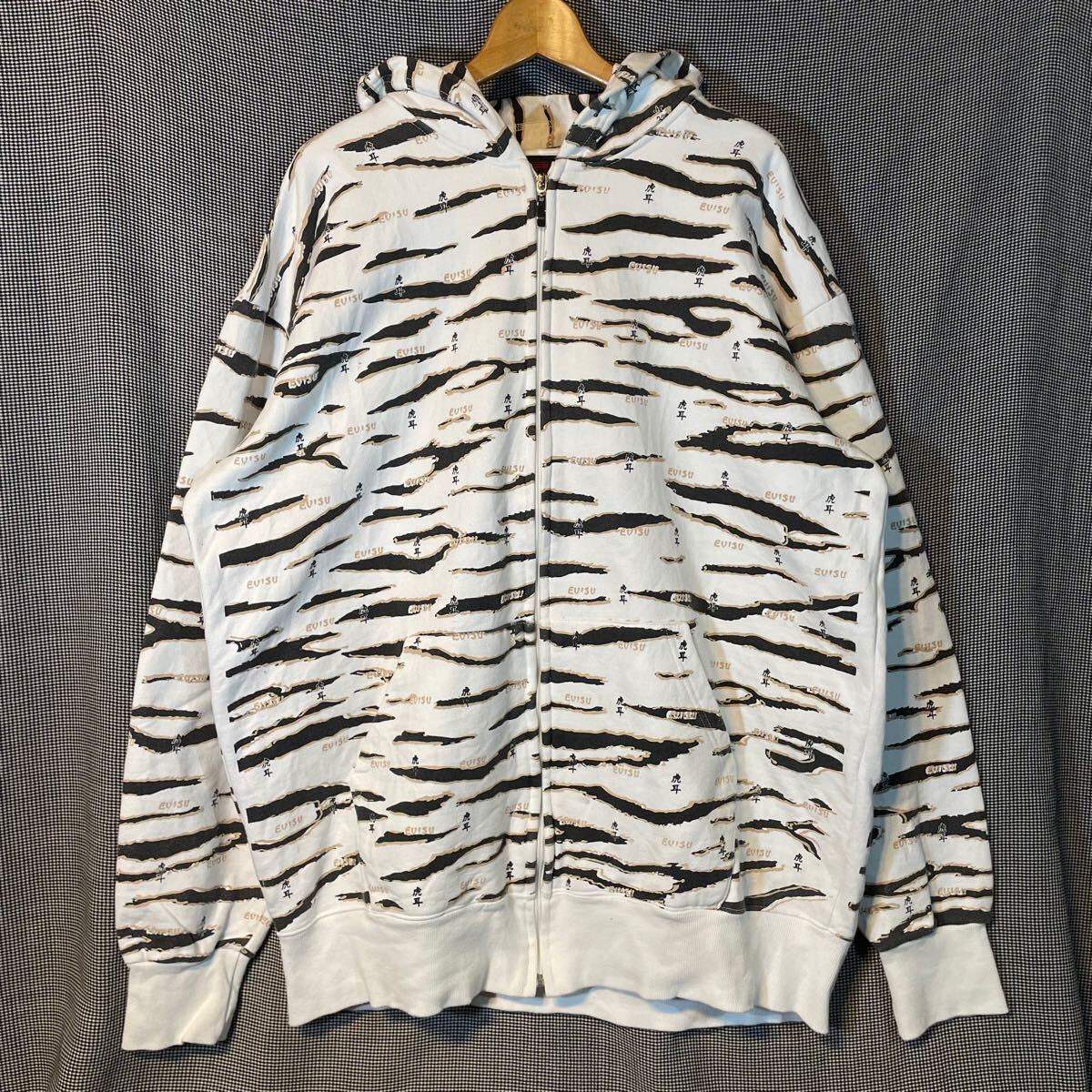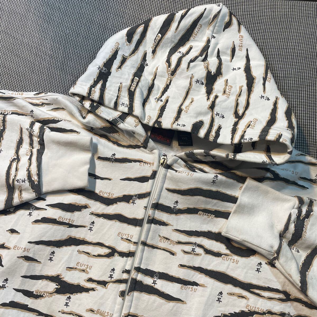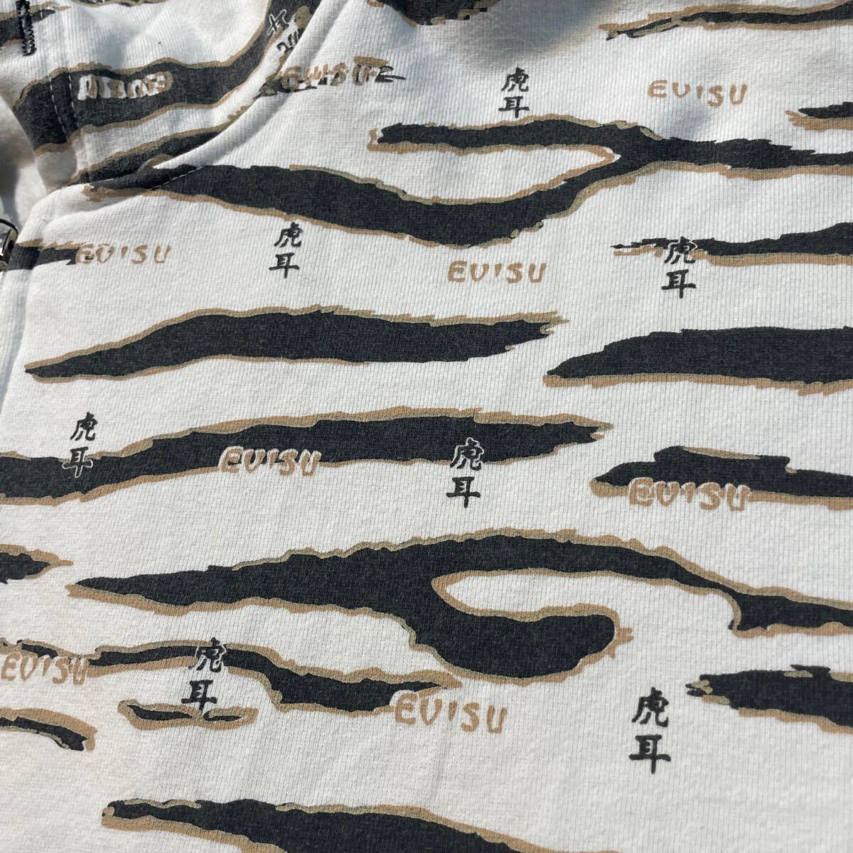 EVISU 虎耳 総柄 タイガー柄 ビッグサイズ パーカー 裏起毛 エヴィス  エビス 大きいサイズ XXL フーディースウェット TORAMIMI 柳10538 トラ耳 フルジップ ジップアップ トレーナー