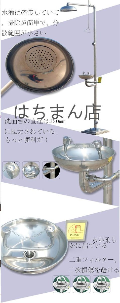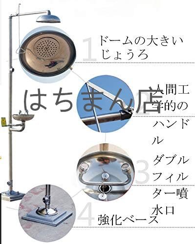 【用途】:この洗眼装置は人の目の安全を守り、電子組立工場、自動車修理工場、金物機械工場、衣料品工場、学校、鉱業工場、金型工場などに最適です。