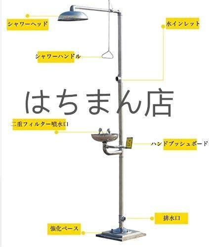 洗眼器 緊急洗眼 シャワーヘッド ダブルアイウォッシュ 洗眼装置 シャワーとアイウォッシュ組み合わせ 304#ステンレス+PVC 縦型 工場用