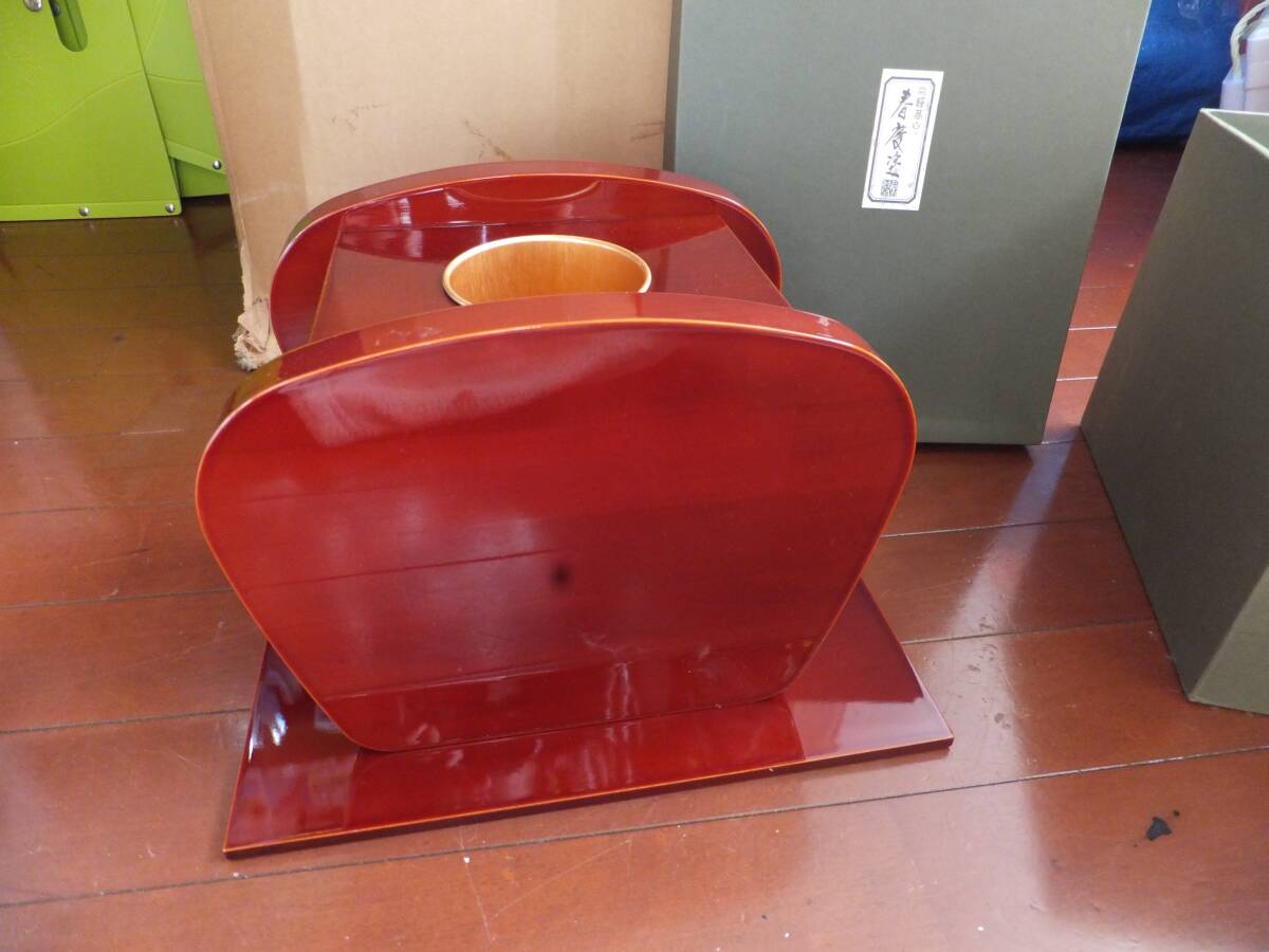 未使用品です。春慶塗の花器です。。サイズは、花台29×22cm、花器24×17.8×16.3cm位です。箱は傷んでいます。自宅保管品ですので神経質な方は御遠慮下さいね。ノークレームノーリターンでお願い致します。その他いろいろ出品していますので見て下さいね