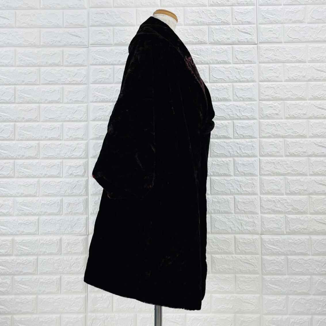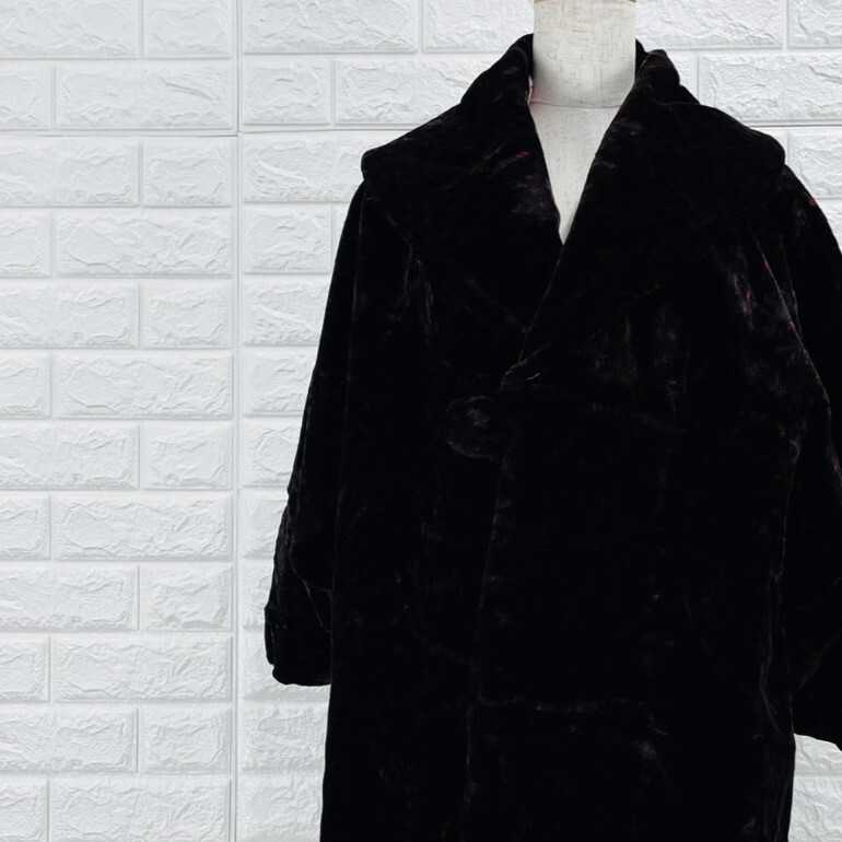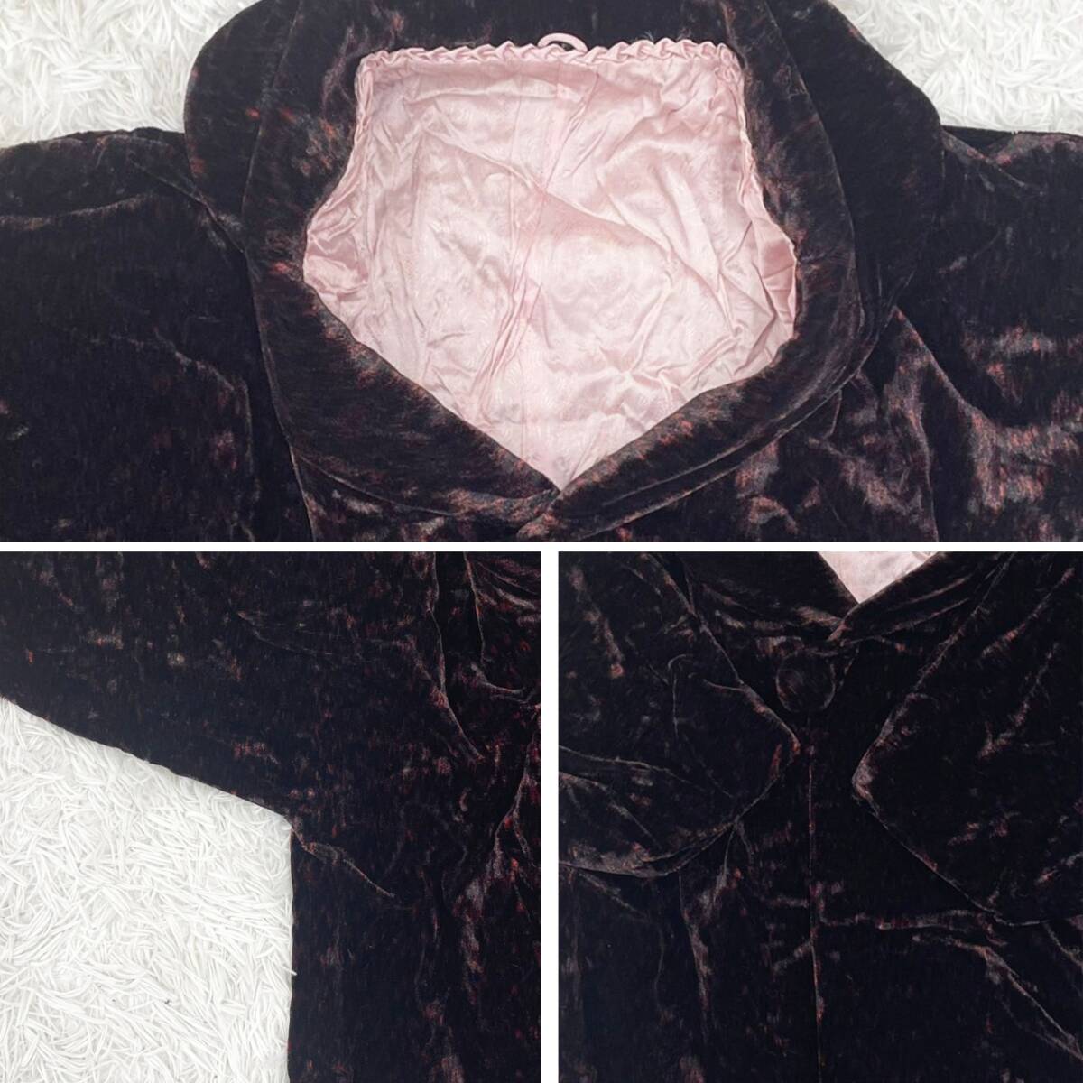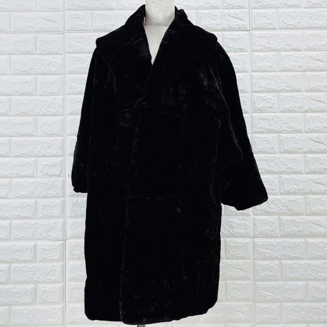 【A2486】コート ロング ベロア レディース ブラック系×ダークオレンジ系 長袖 アウター ゆったり エレガント 秋冬 Lサイズ