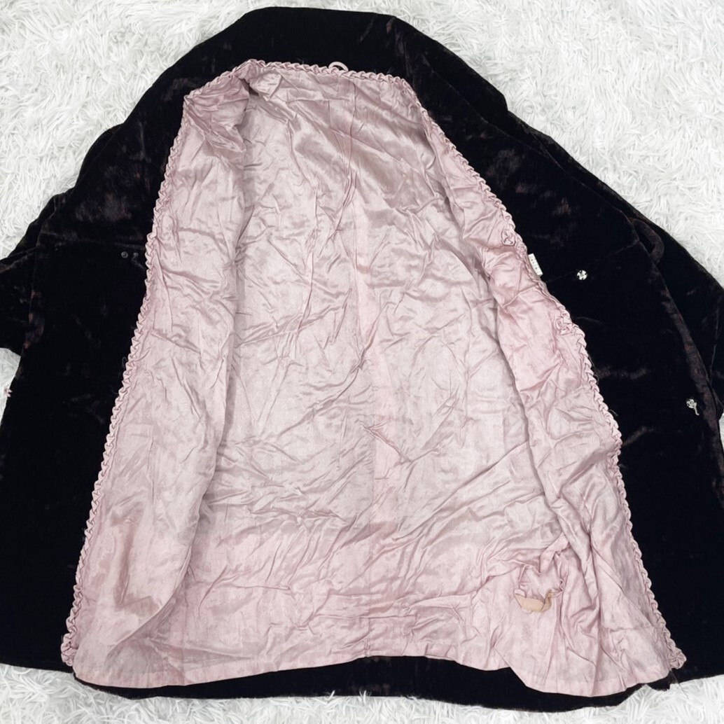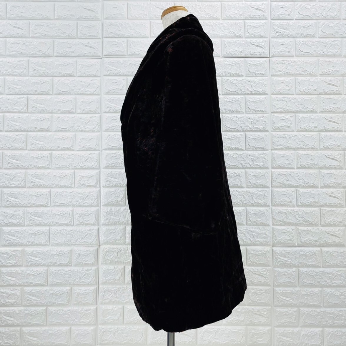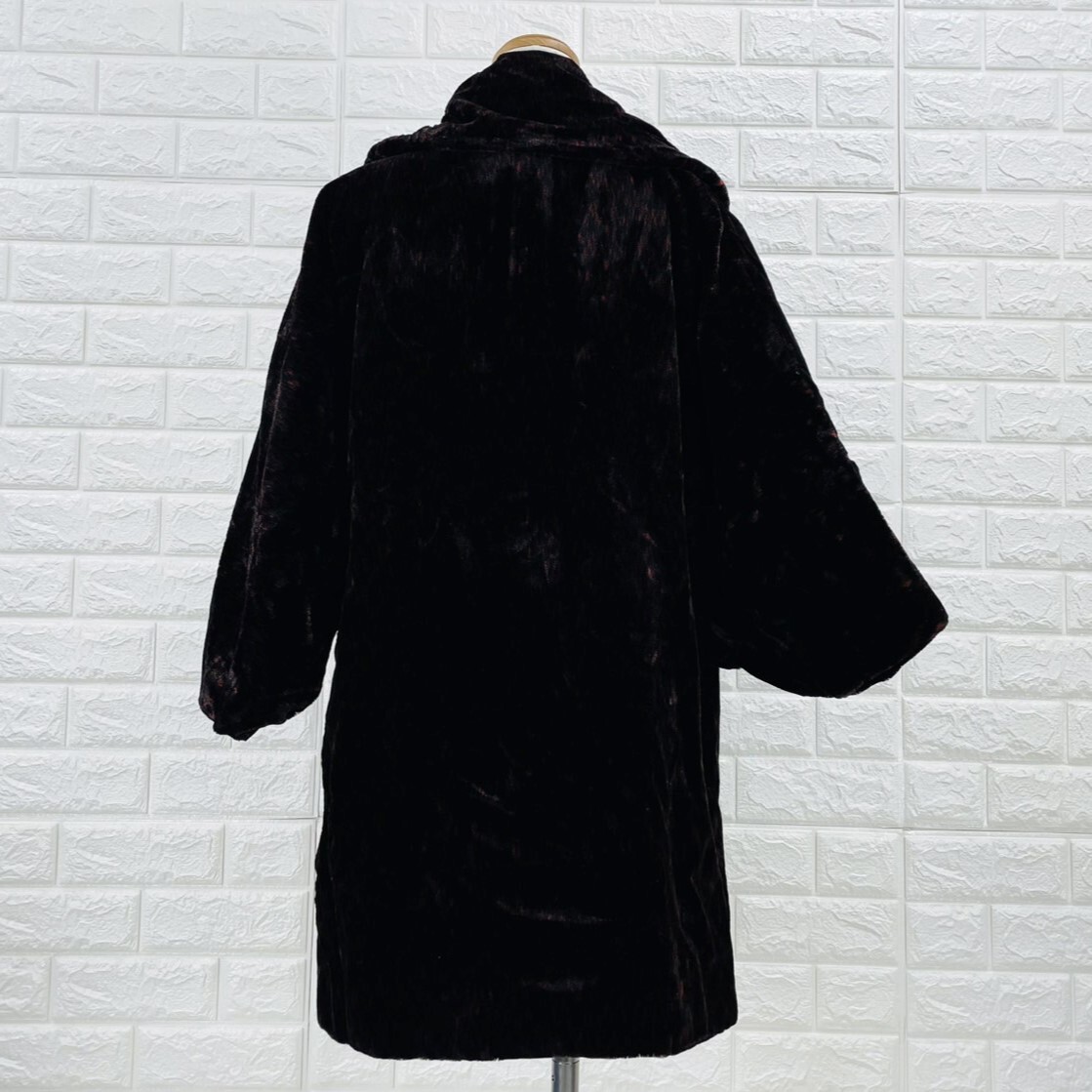 【A2486】コート ロング ベロア レディース ブラック系×ダークオレンジ系 長袖 アウター ゆったり エレガント 秋冬 Lサイズ