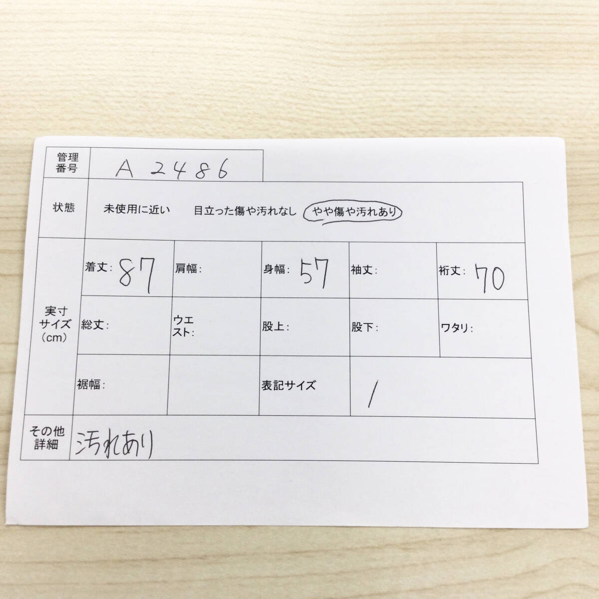 発送の際、折り畳んで圧縮袋に入れて配送致します。お洋服の梱包じわはご了承下さい。