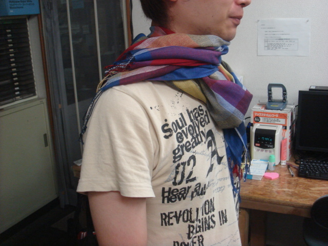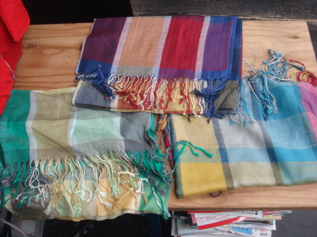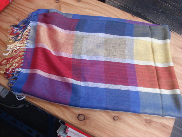 とても発色の良いポリ/コットン!?のマドラスチェックのストールになります。