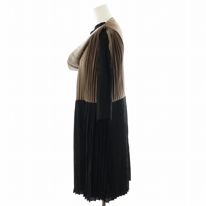 未使用品 スポーツマックス マックスマーラ SPORT MAX ワンピース 2点セット ミニ丈 7分袖 プリーツ 絹 シルク S 黒 ブラック 茶