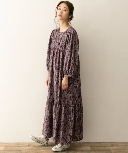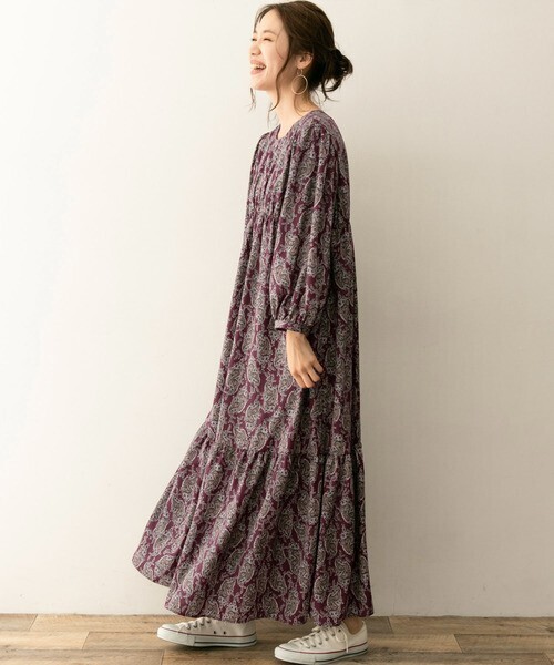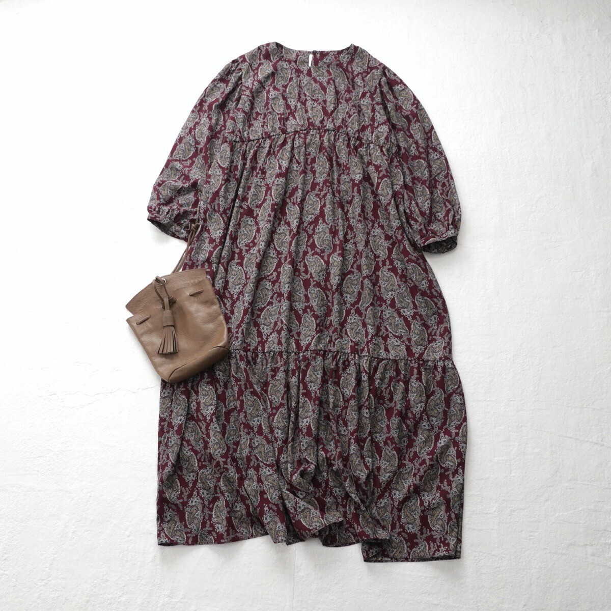 【送料無料】 美品*1.5万 F by ROSSO|大人きれいめ♪ペイズリーマキシワンピース ボルドー(アーバンリサーチ)