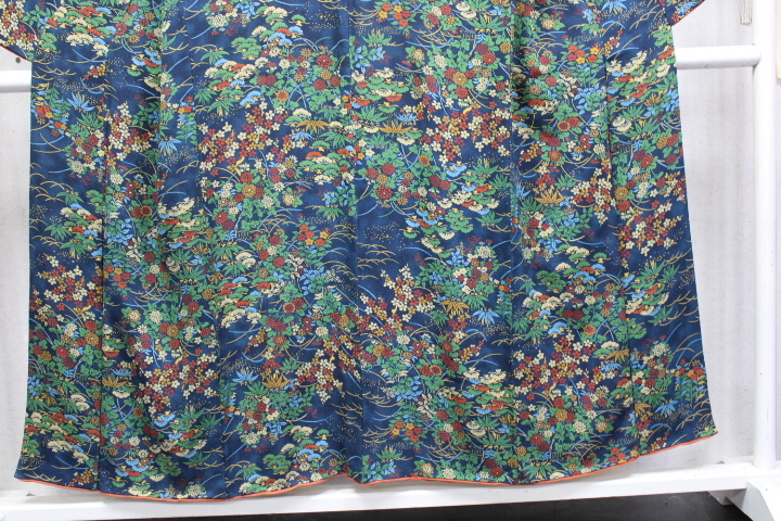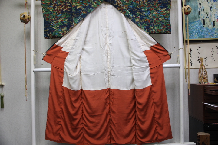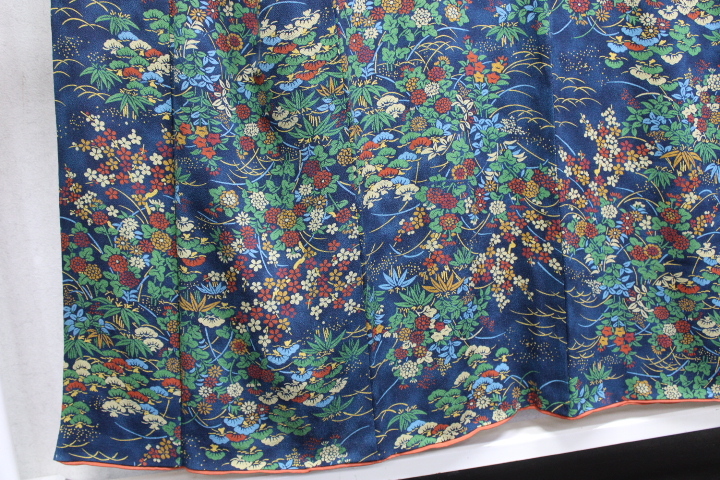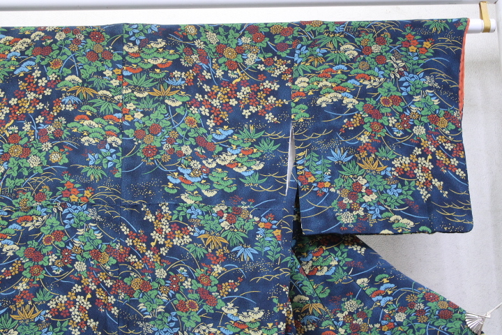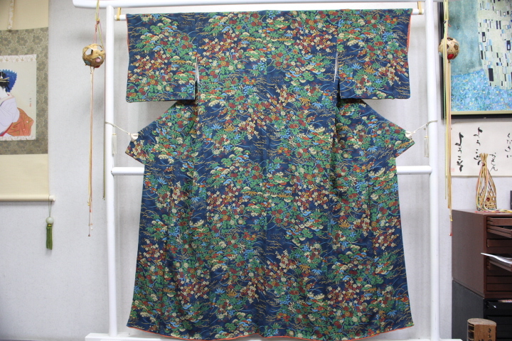 正絹一越ちりめん地小紋のきもの 広衿袷手縫い仕立