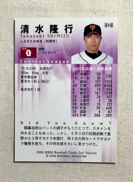 2006 BBM Baseball Cards 2nd version #684 清水隆行 読売ジャイアンツ/読売巨人軍 | |||