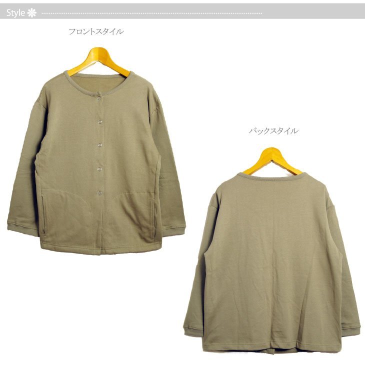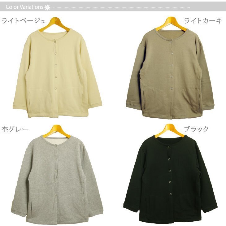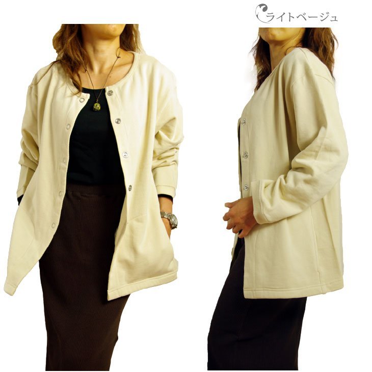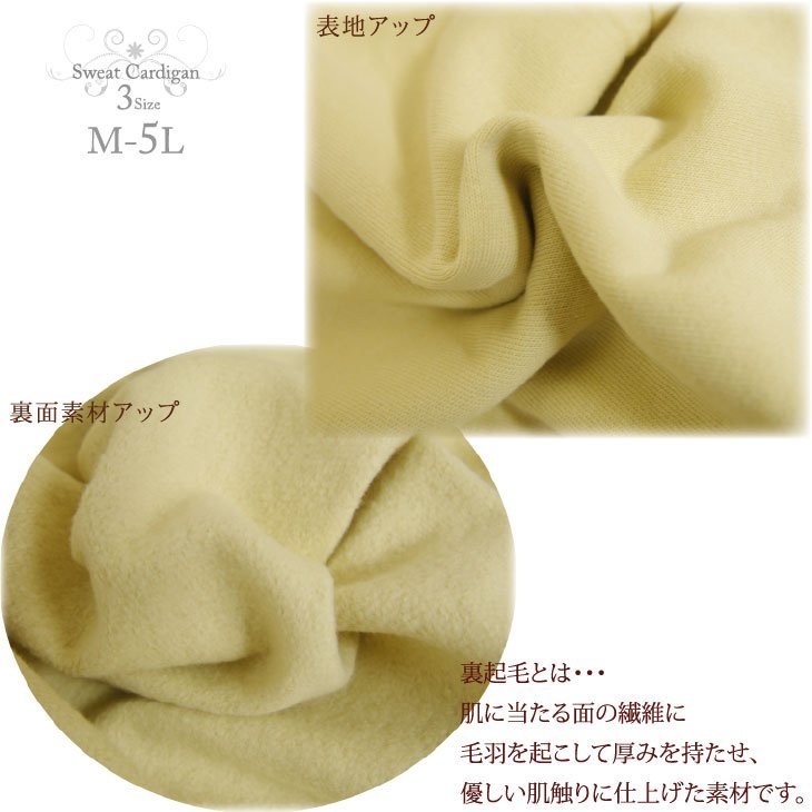 4L~5L 裏起毛 スウェット レディース 秋冬 羽織 ドット釦カーディガン クルーネック ライトベージュ 新品
