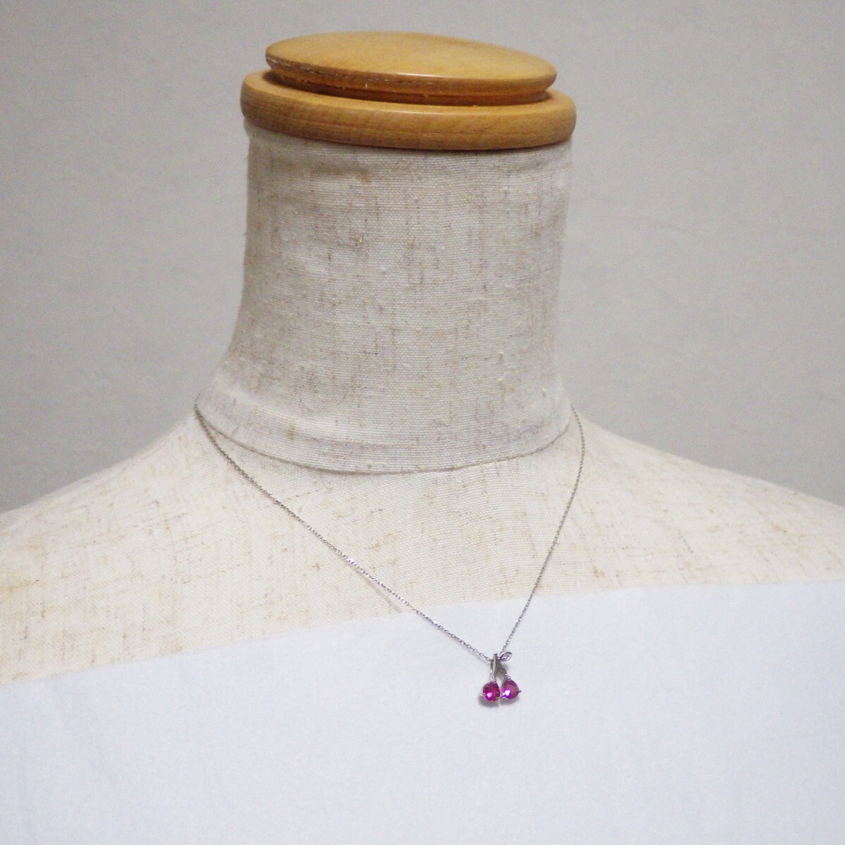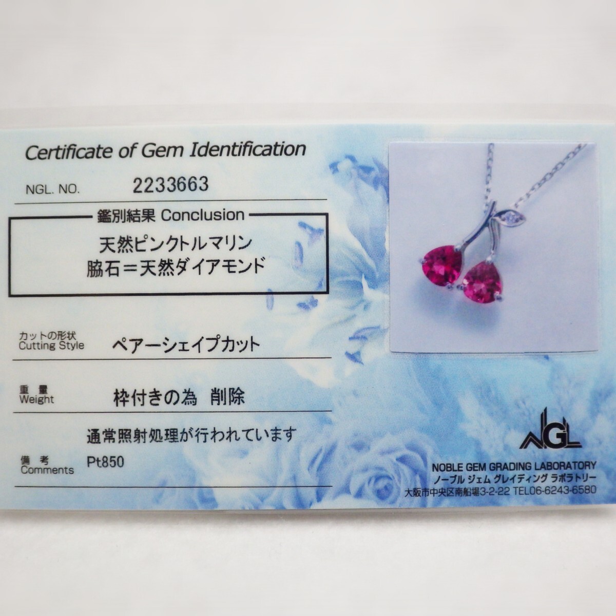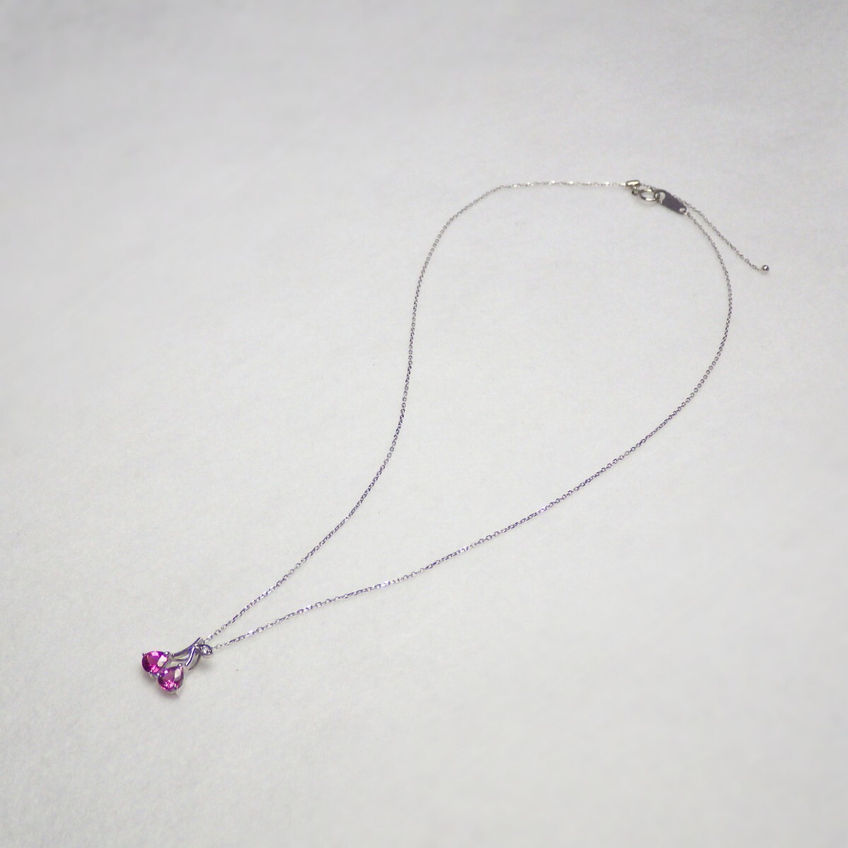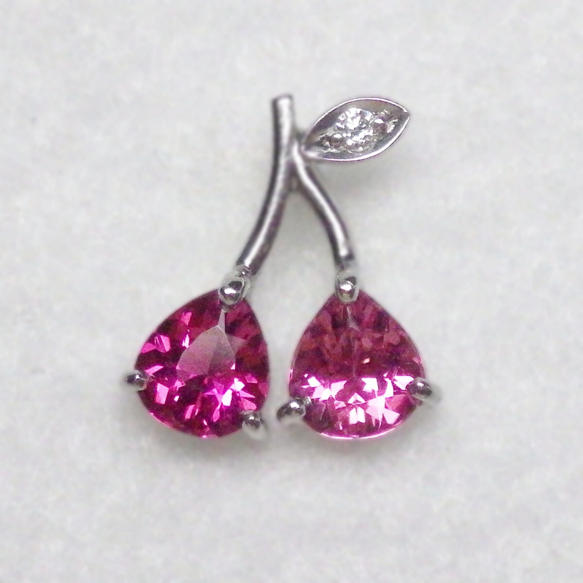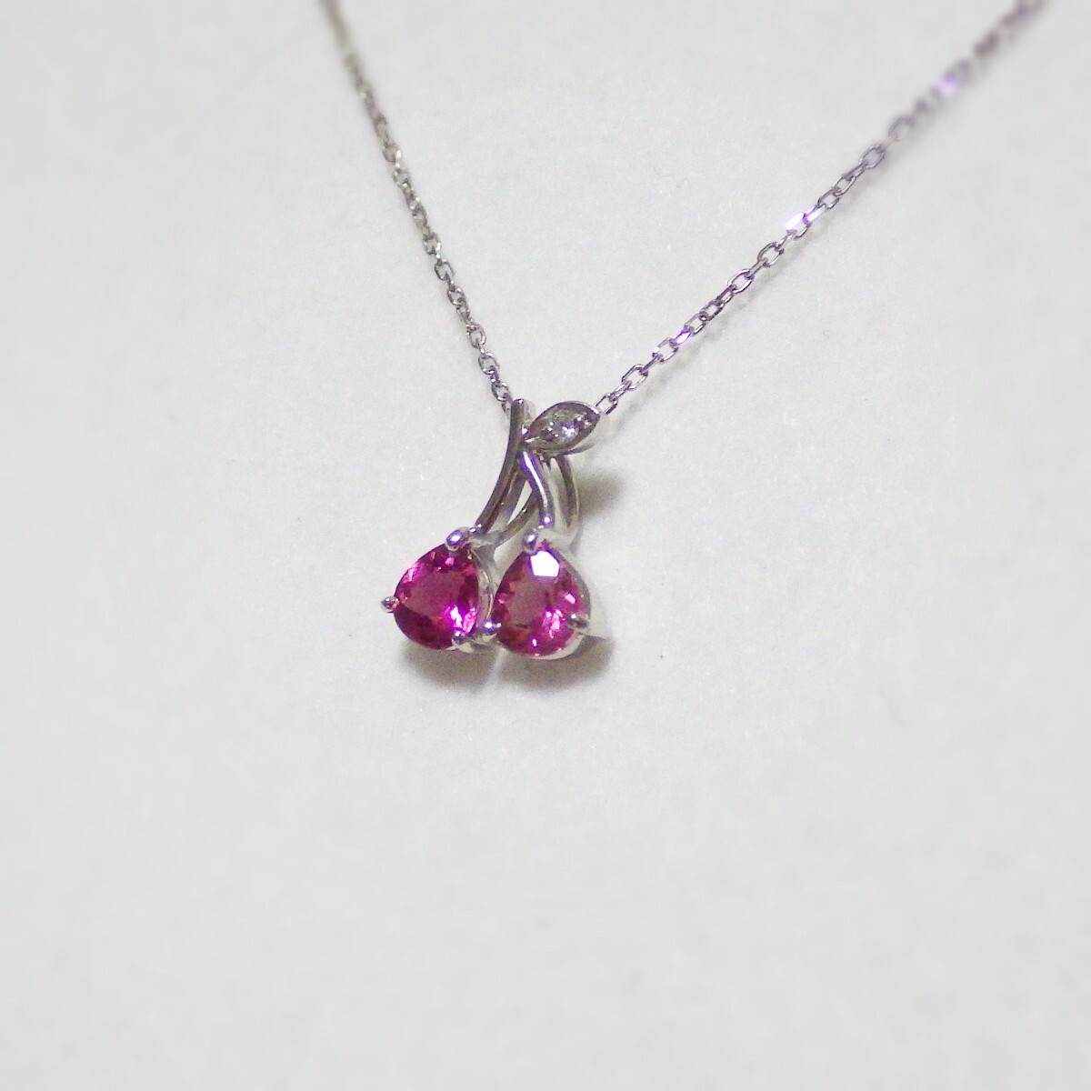 「Pt ダイヤモンド(Diamond) ピンク トルマリン(Pink Tourmaline) サクランボ プラチナ ネックレス付き」