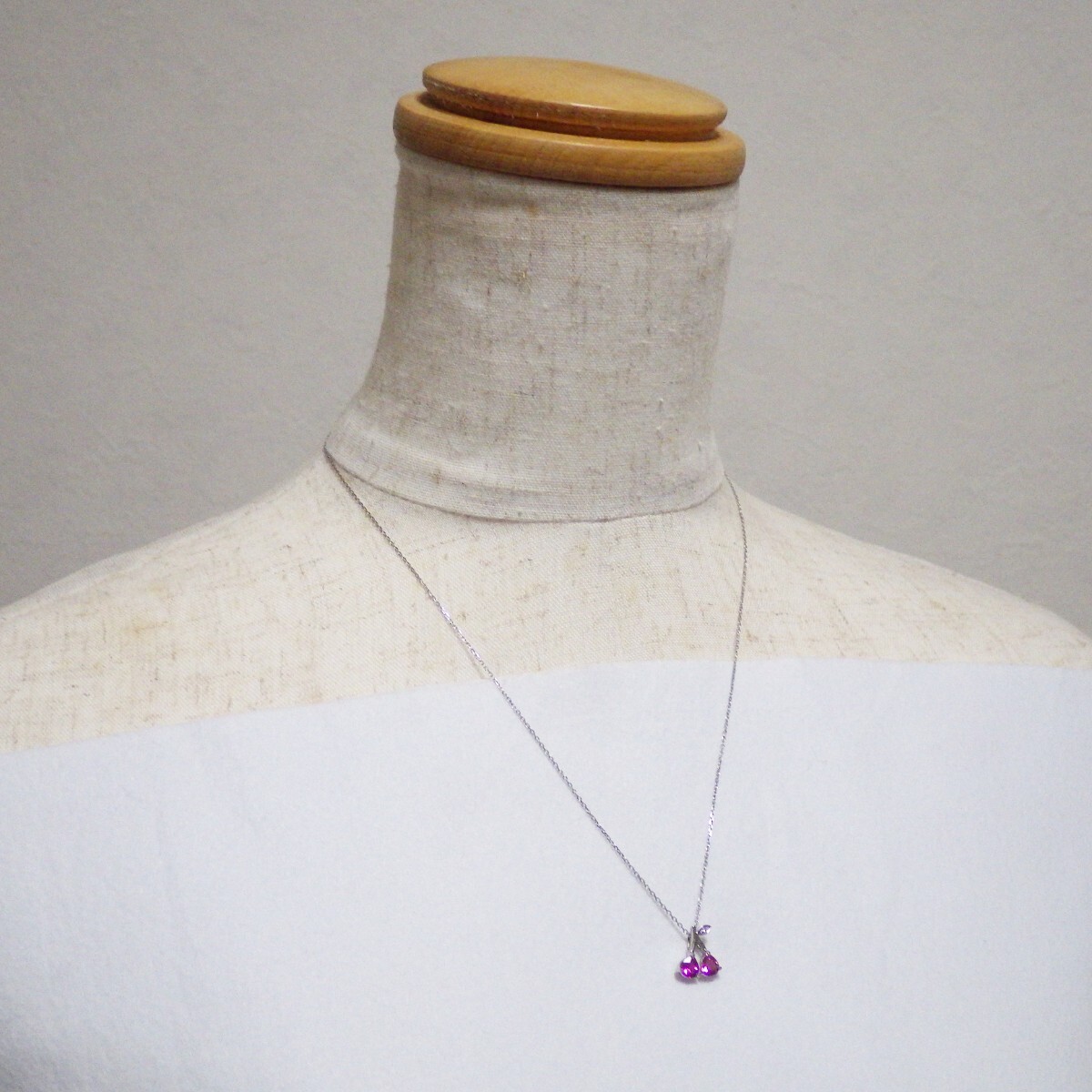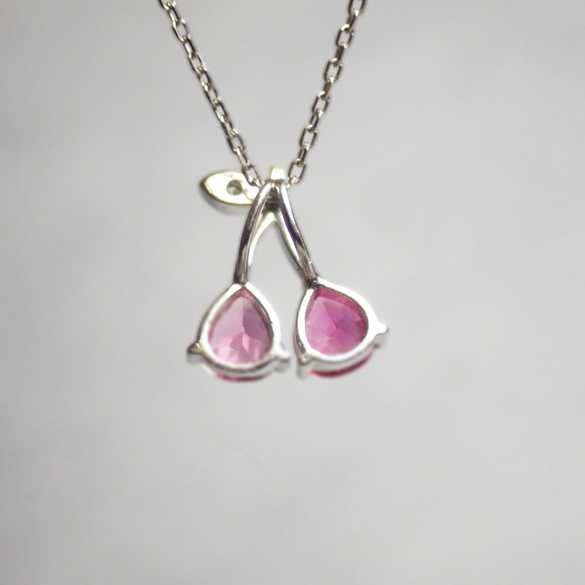 大人可愛いピンクトルマリンのサクランボ(Cherry)を胸元に