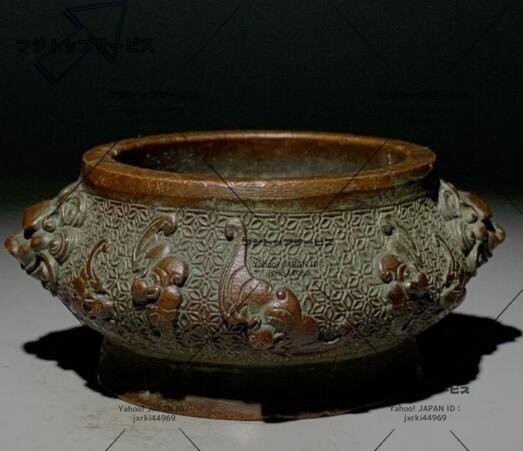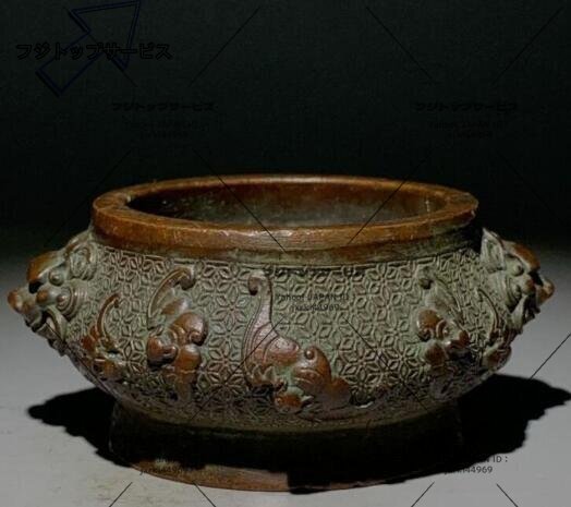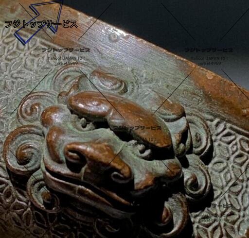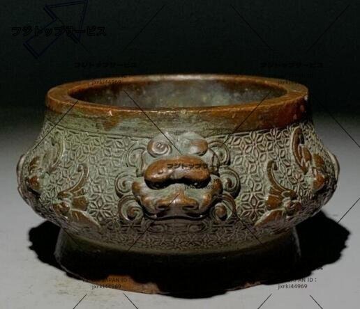 特価★農村紫銅香炉燻香炉双獅子五福老銅器高4 CM