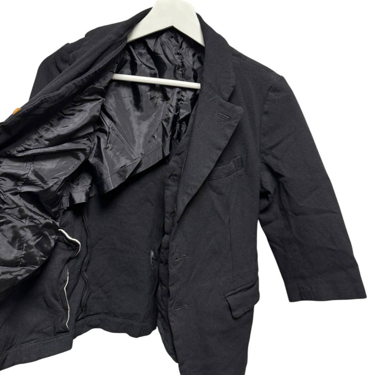 備考 | ブランド定番のポリエステル縮絨加工を施しジャケットの中にはジレをつけた一着。7分袖でユニークな一着です。※目立った汚れはございませんが完璧を求めるかたやヴィンテージアイテムにご理解ないかたはご購入をお控えくださいませ。 |
